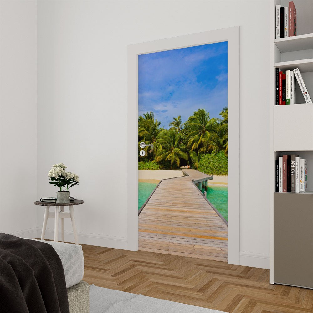 Trestle Beach Palm Tree Door Wrap, Customized Mural For Door, Door Mural Sticker, Peel And Stick Door Cover, Removable Door Decal