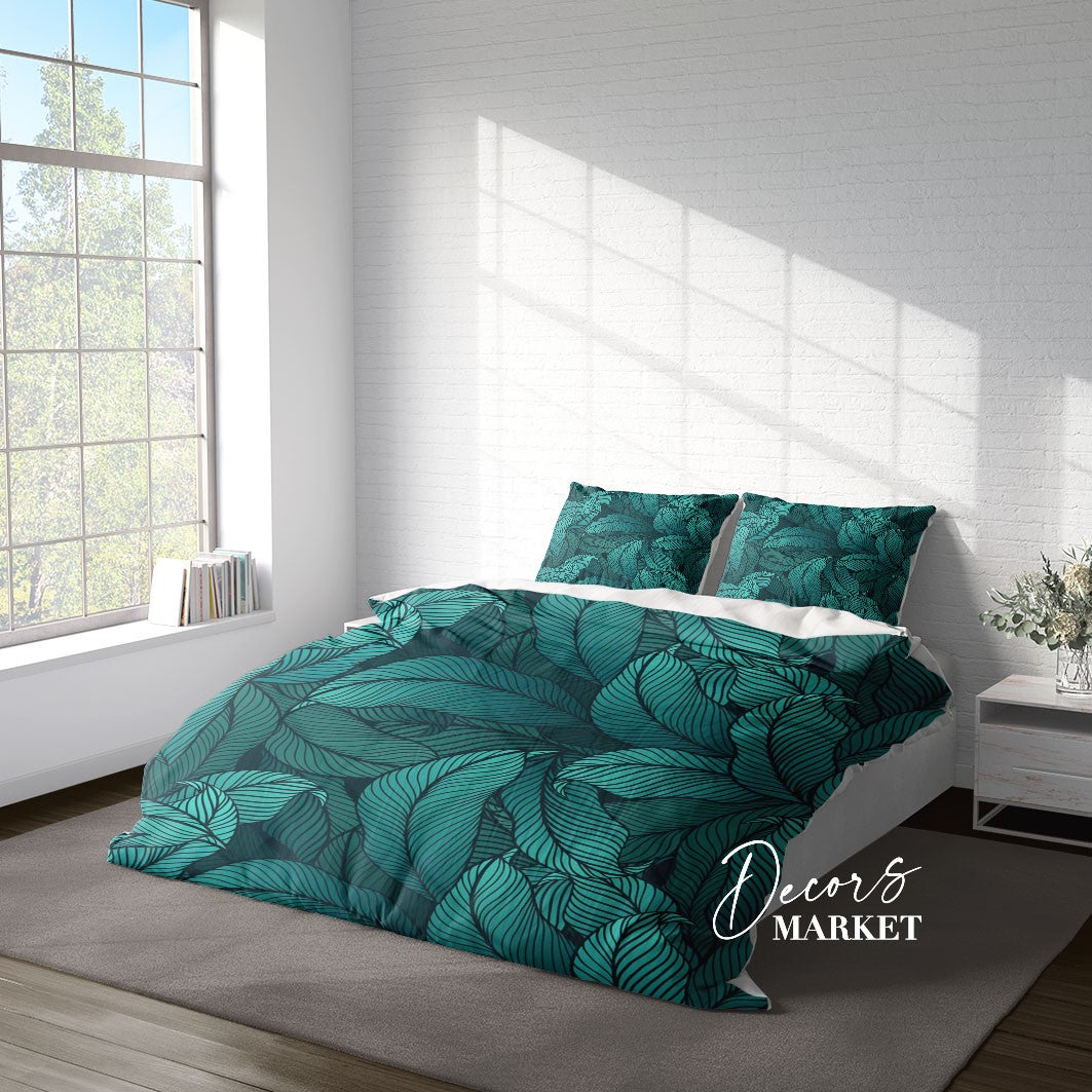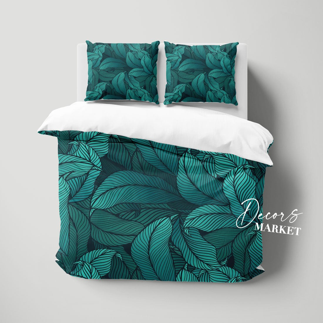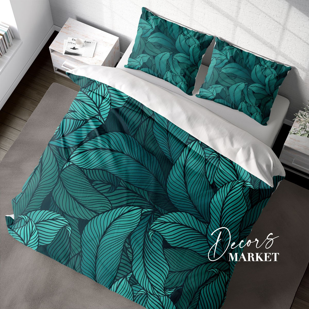 Tropical Banana Leaves Duvet Cover Set w Pillowcases, Green Floral Leaves 3D Quilt Cover, 3pc Single Double Queen King Size Doona Cover