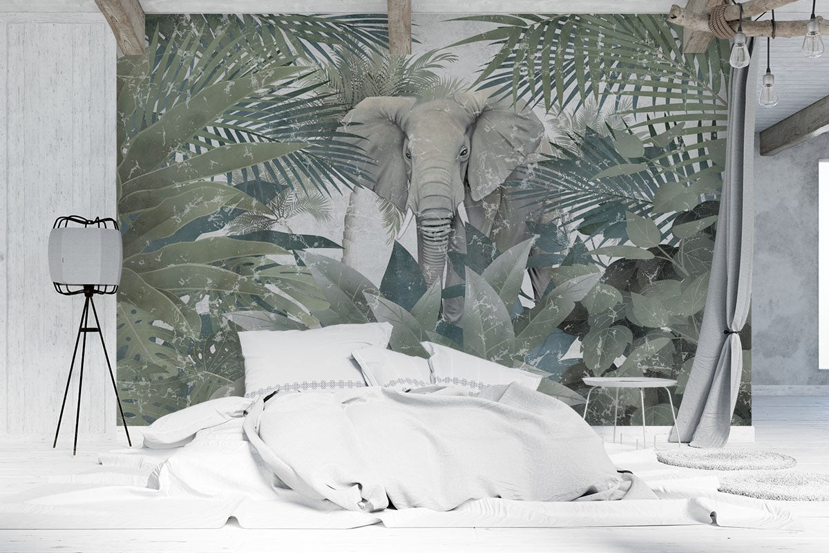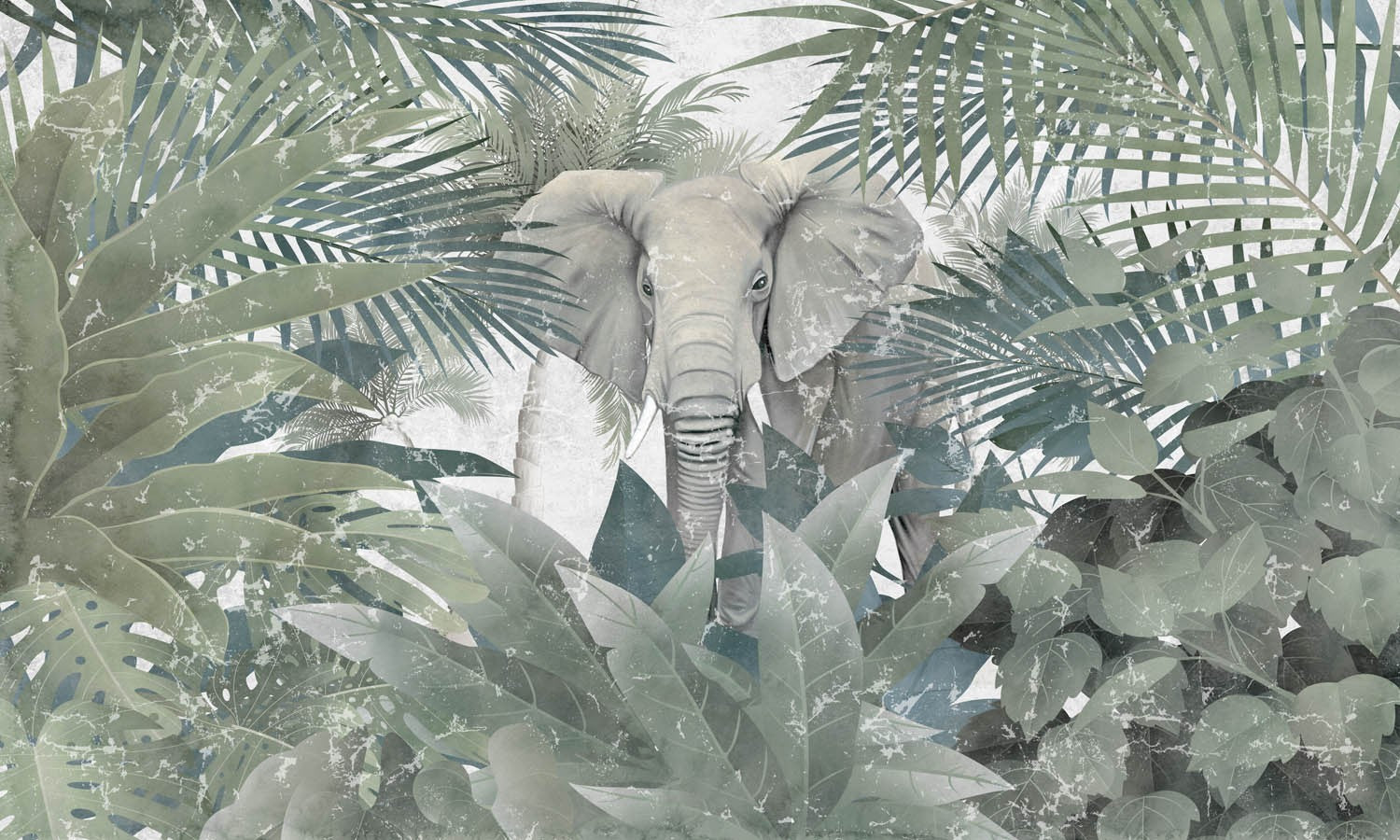 Tropical Elephant Kids Animal Green Wallpaper Mural