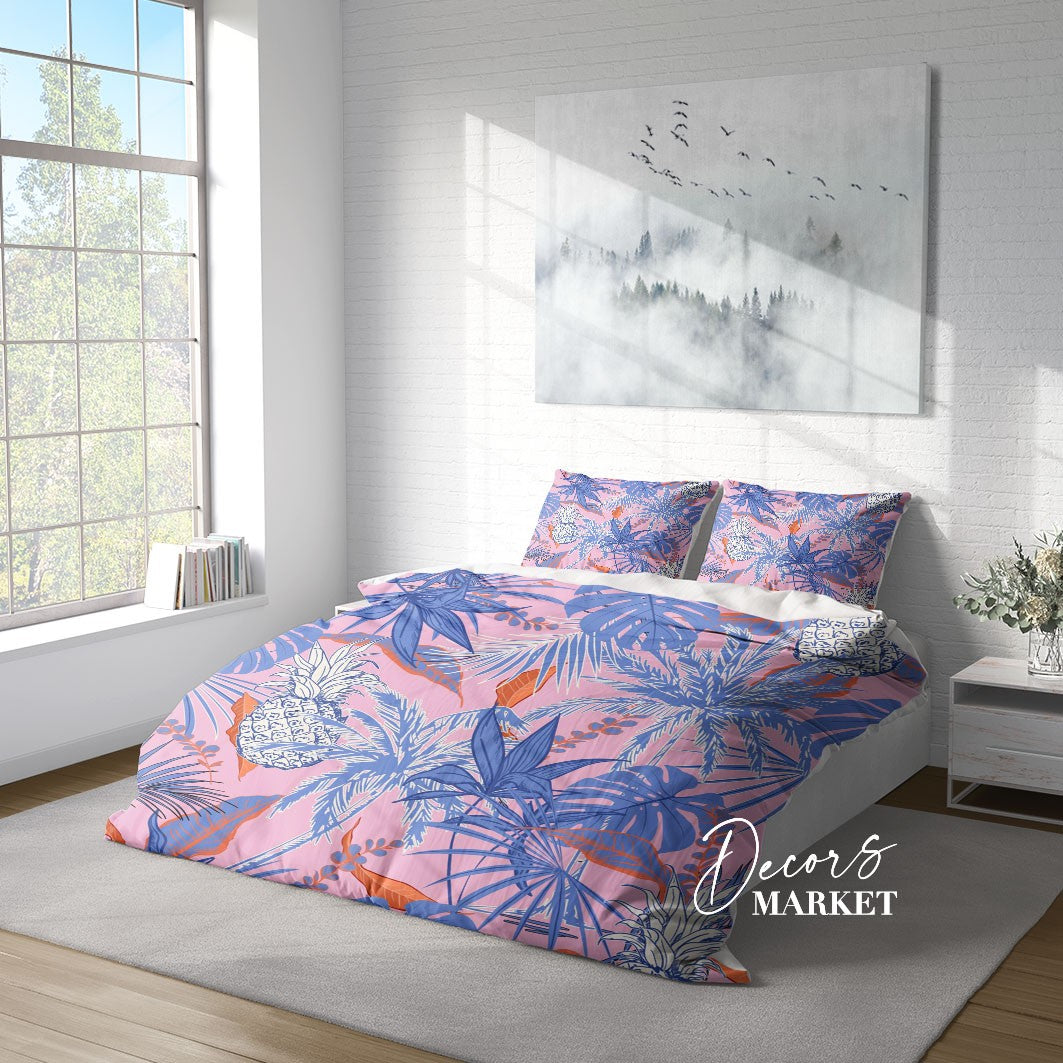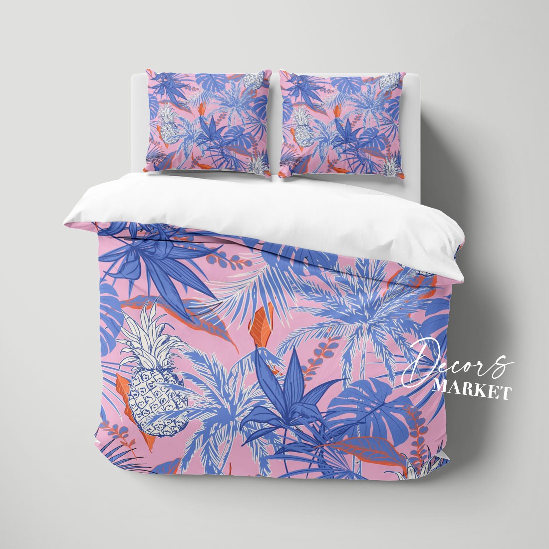 Tropical Flower Leaf Art Duvet Cover Set w Pillowcases, Purple Floral Patterns 3D Quilt Cover, 3pc Single Double Queen King Size Doona Cover