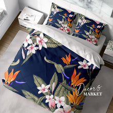 Tropical Hibiscus Frangipani Duvet Cover Set w Pillowcases, Blue Floral Patterns 3D Quilt Cover, Single Double Queen King Size Doona Cover