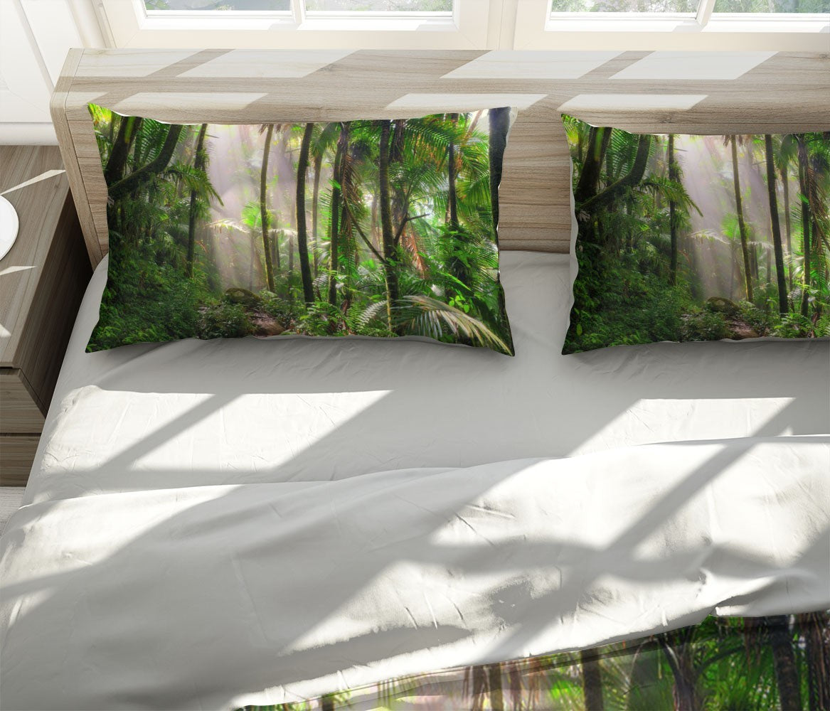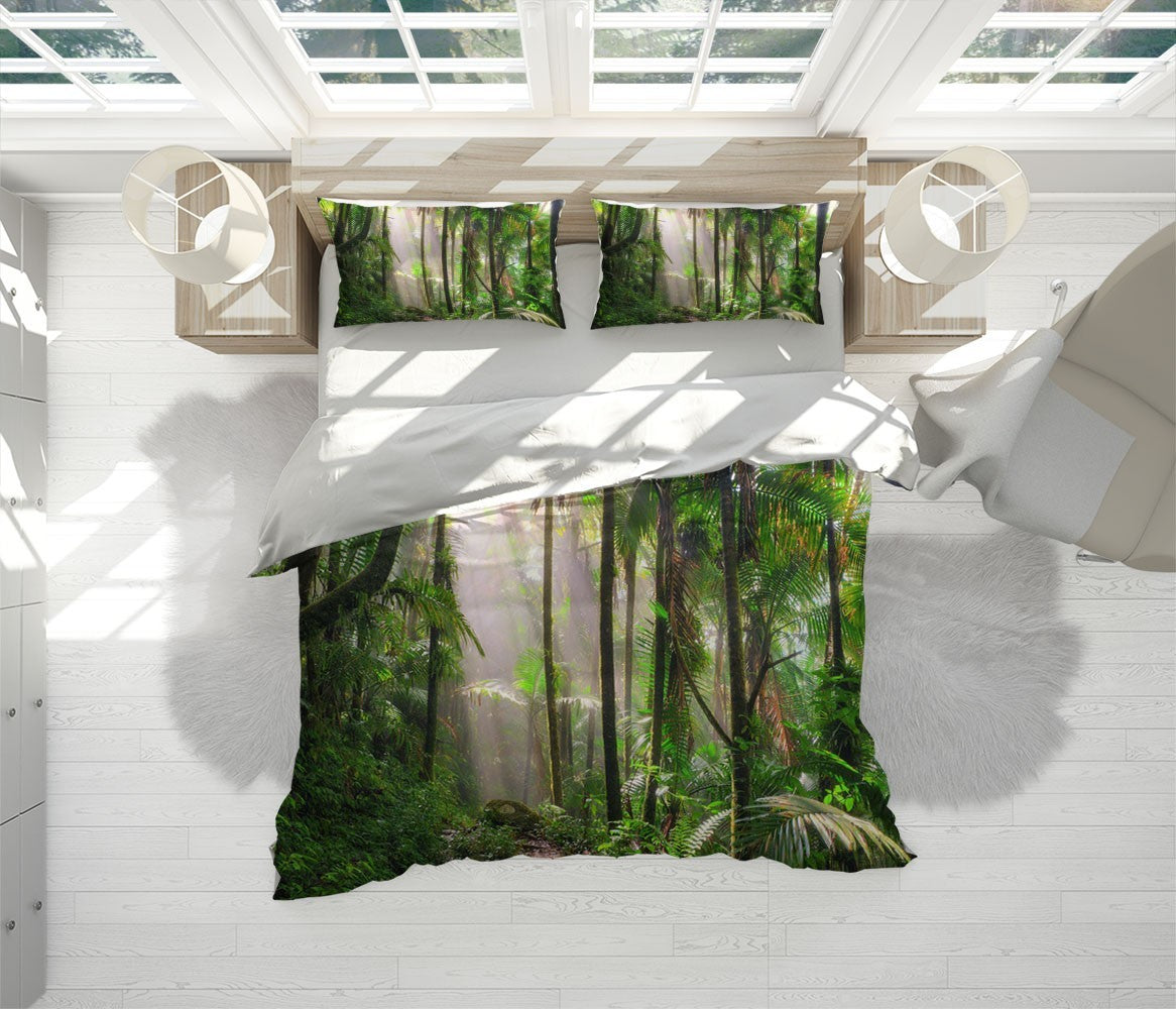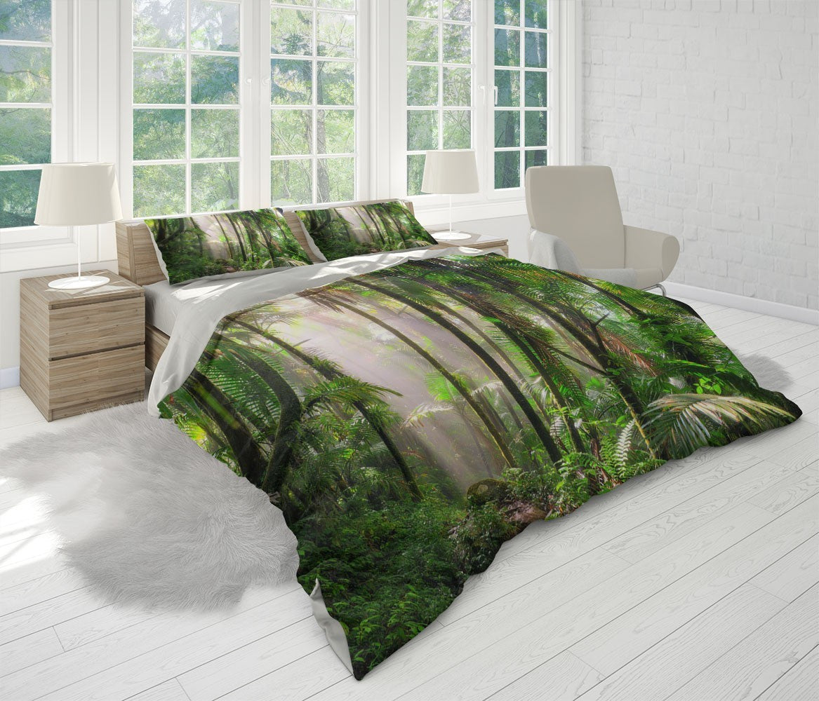 Tropical Jungle Duvet Cover Set W Pillow Cover, Green Forest Jungle 3D Quilt Cover, Single Double Queen King Size Doona Cover