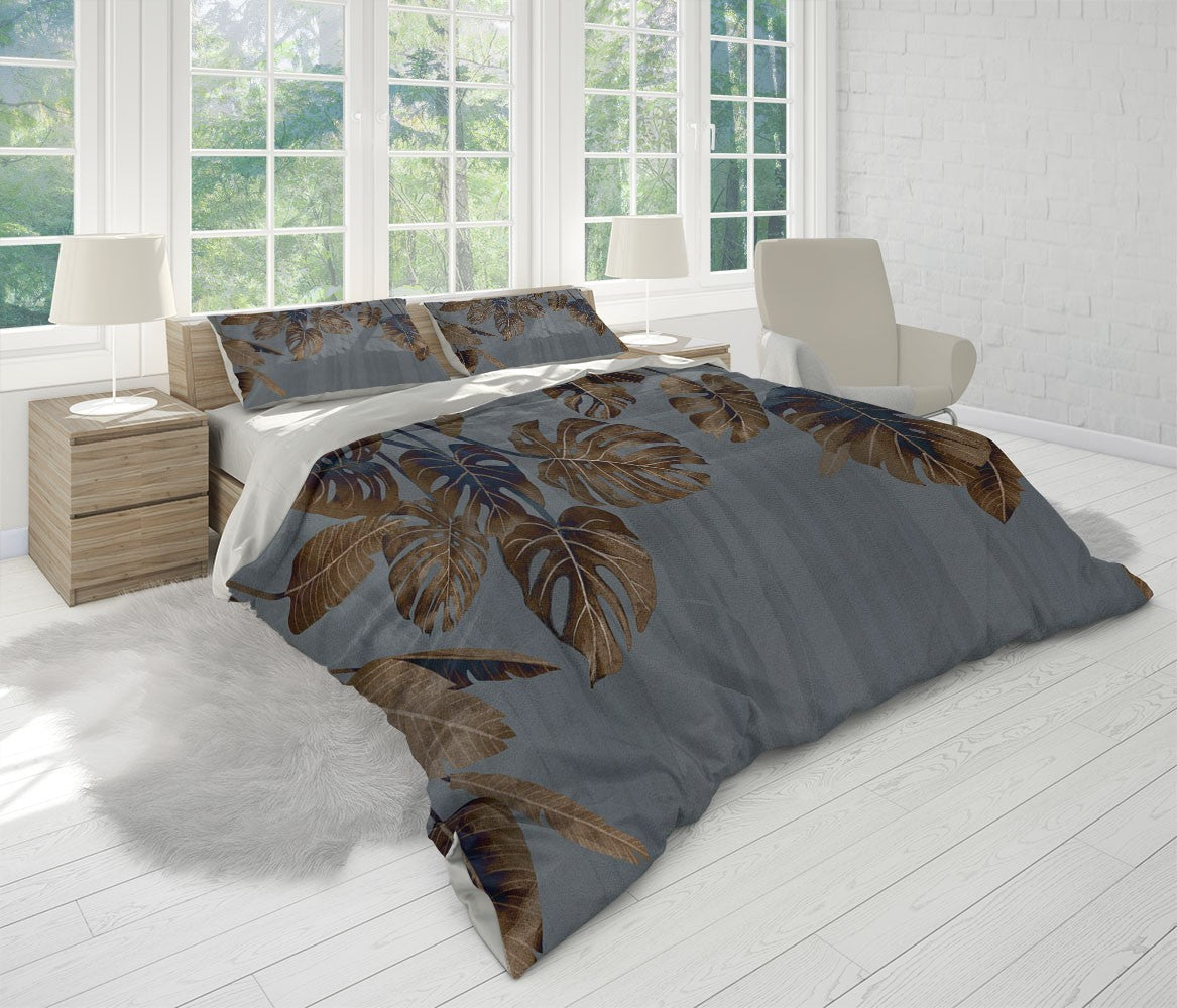 Tropical Leaves Floral Black 3D Duvet Cover Set W Pillow Cover, Single Double Queen King Size, Printed Cotton Quilt Doona Cover 3 Pcs