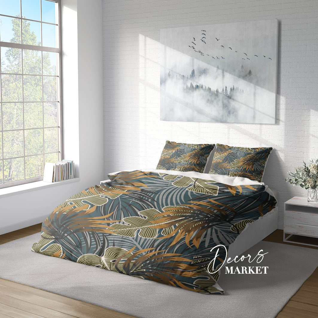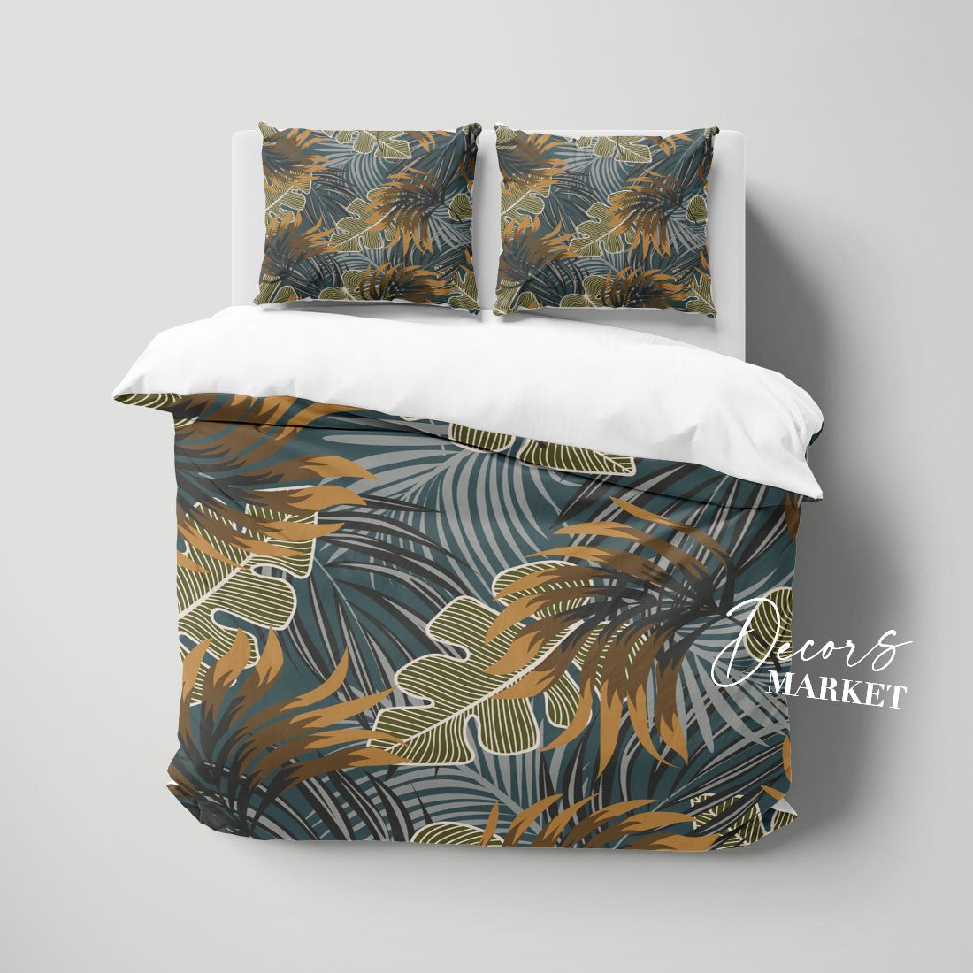 Tropical Leaves Duvet Cover Set w Pillowcases, Blue Floral Leaves 3D Quilt Cover, 3pc Single Double Queen King Size Doona Cover