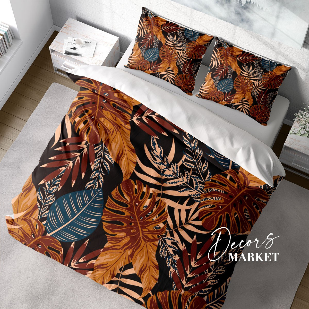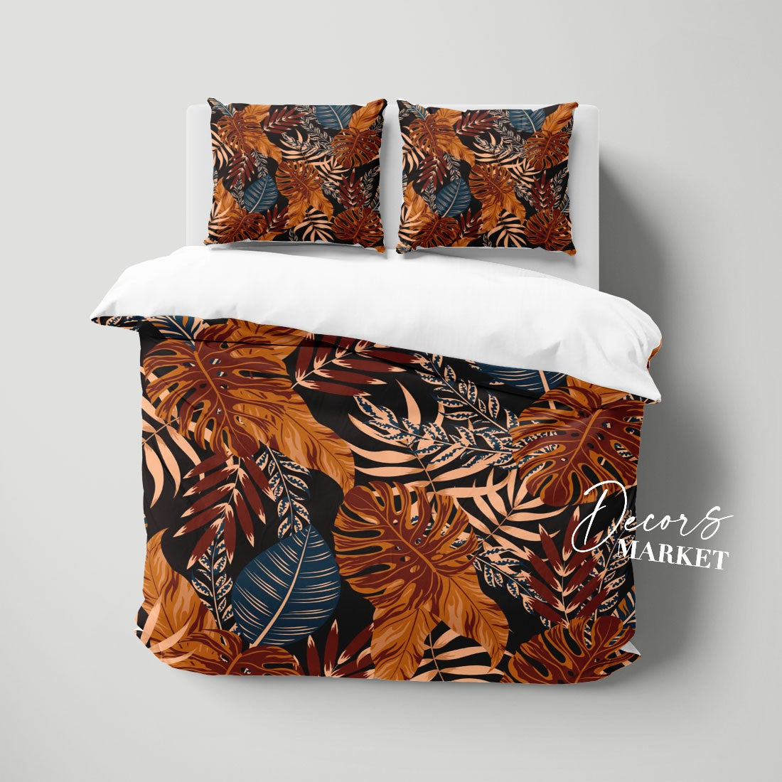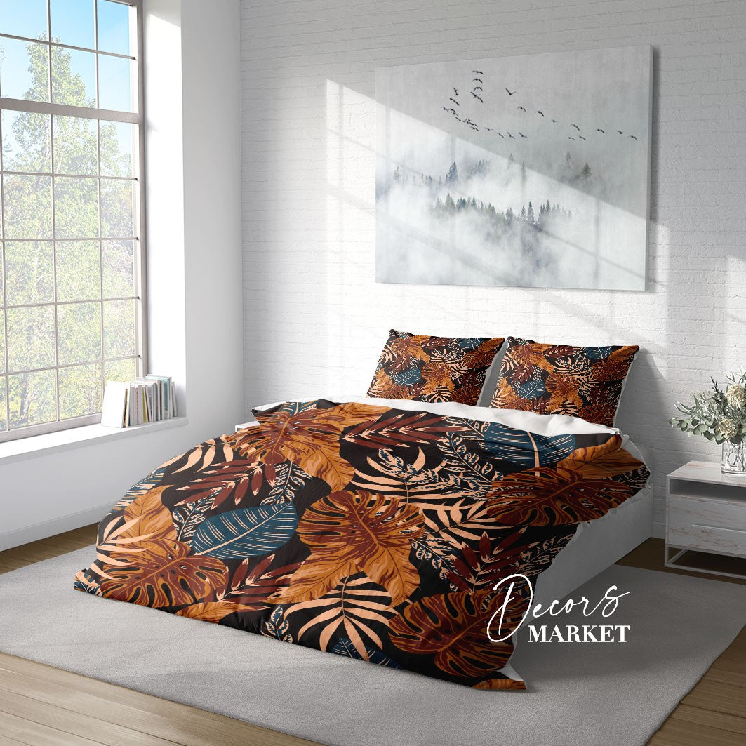 Tropical Leaves Duvet Cover Set w Pillowcases, Brown Floral Leaves 3D Quilt Cover, 3pc Single Double Queen King Size Doona Cover