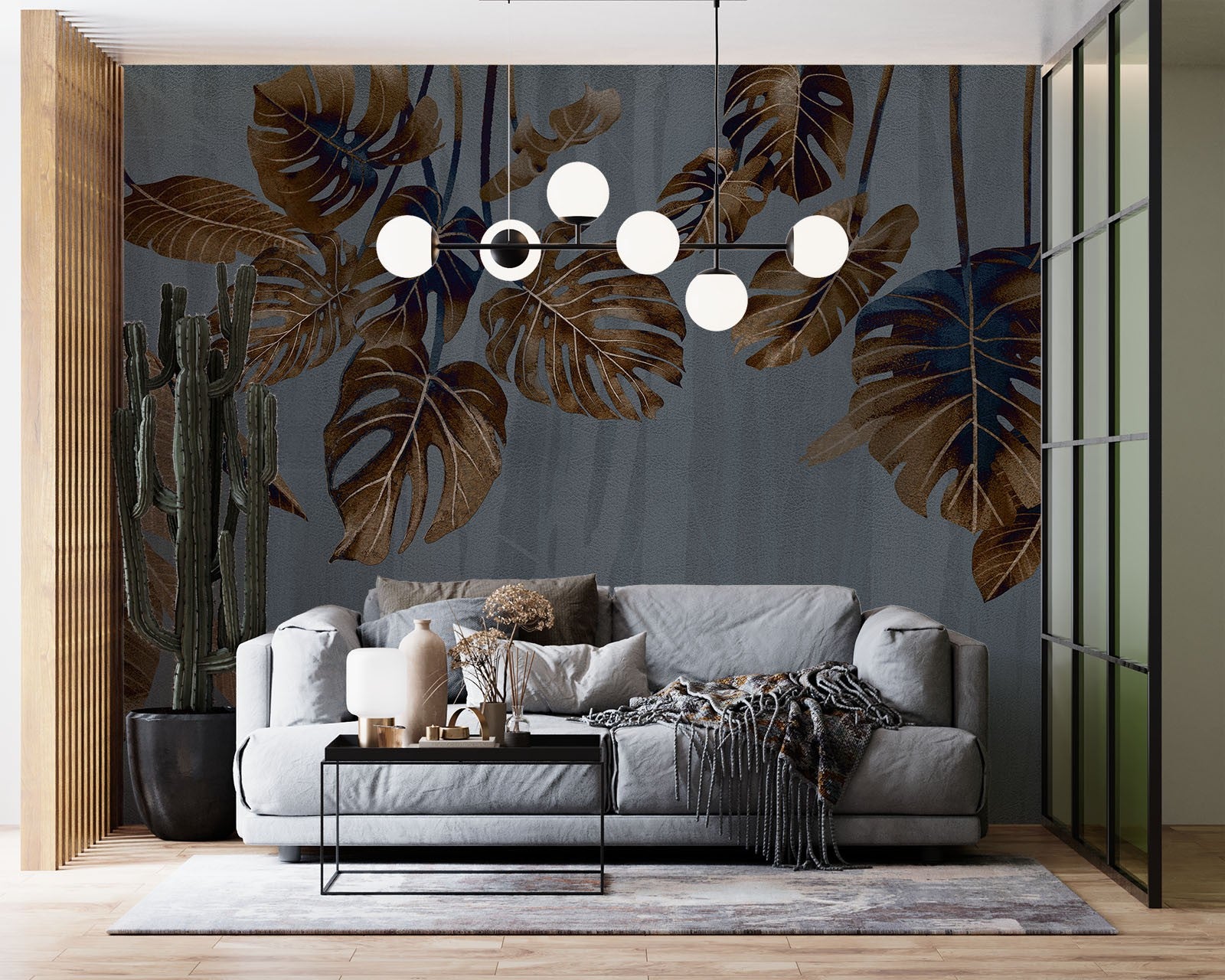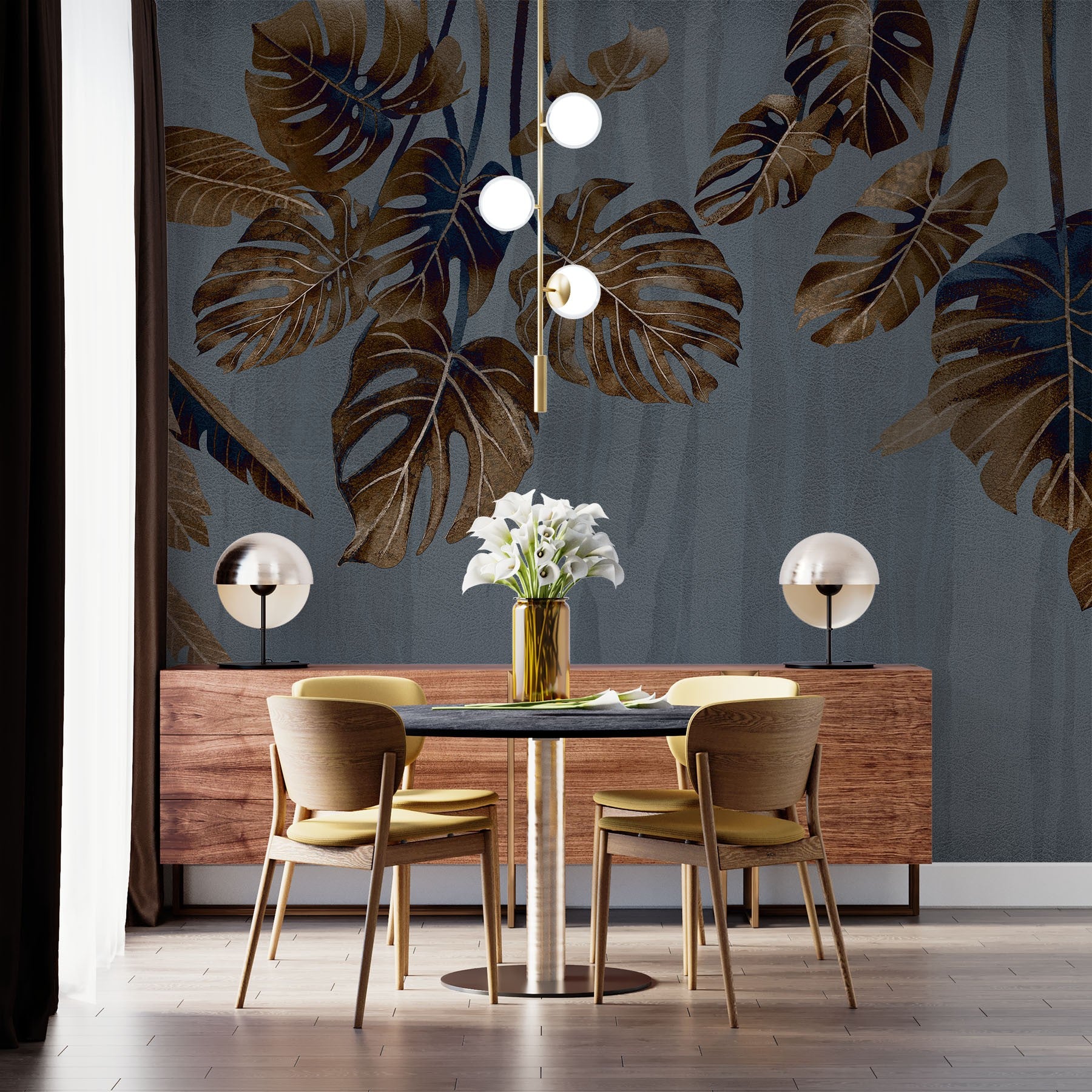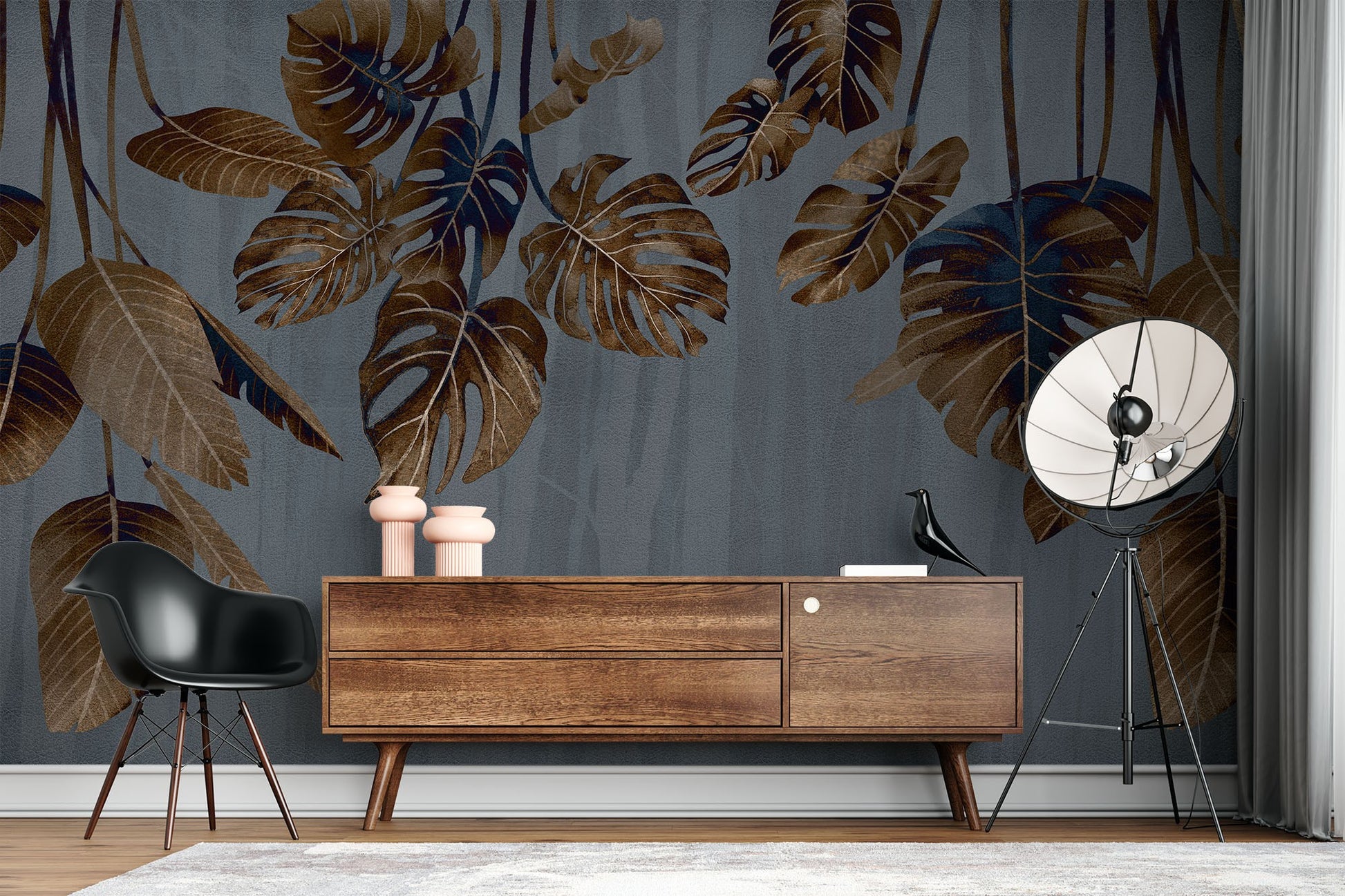Tropical Leaves Floral Leaves Dark Wallpaper Mural