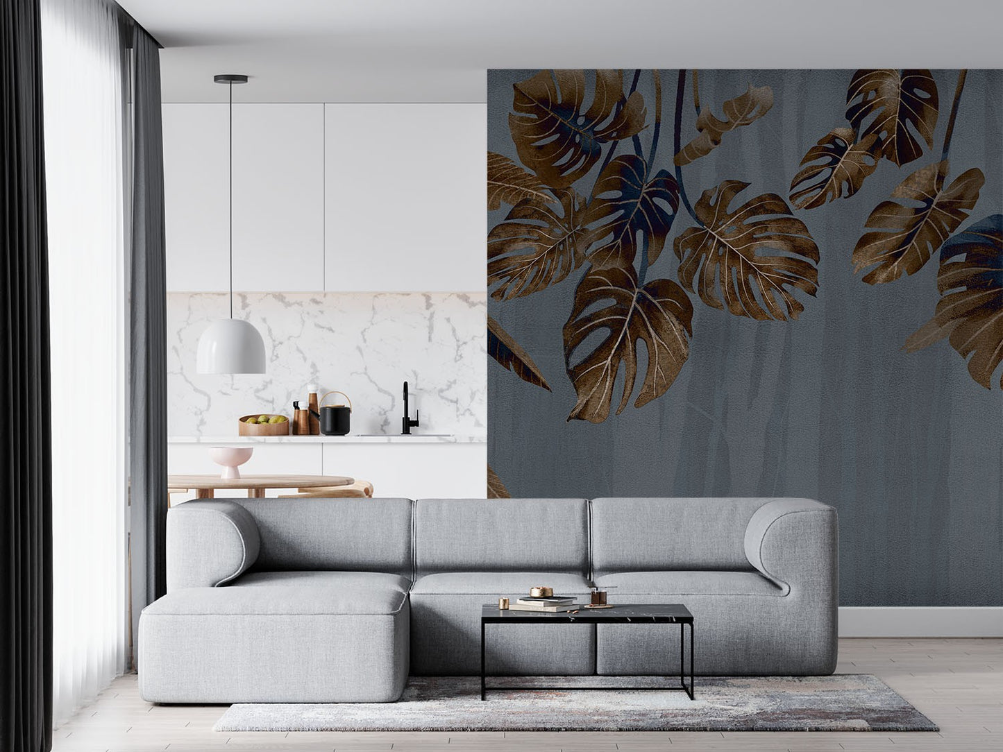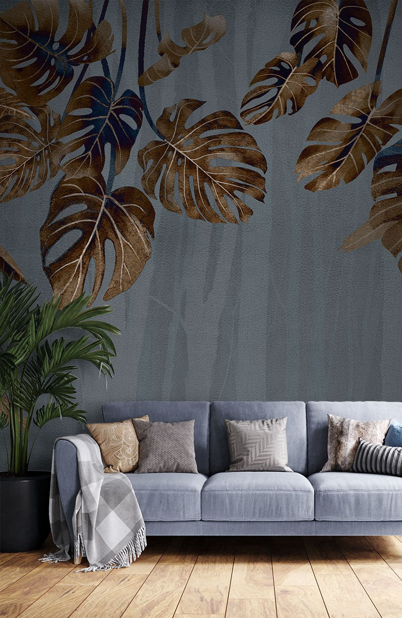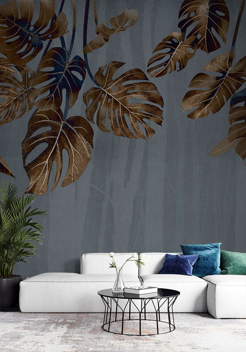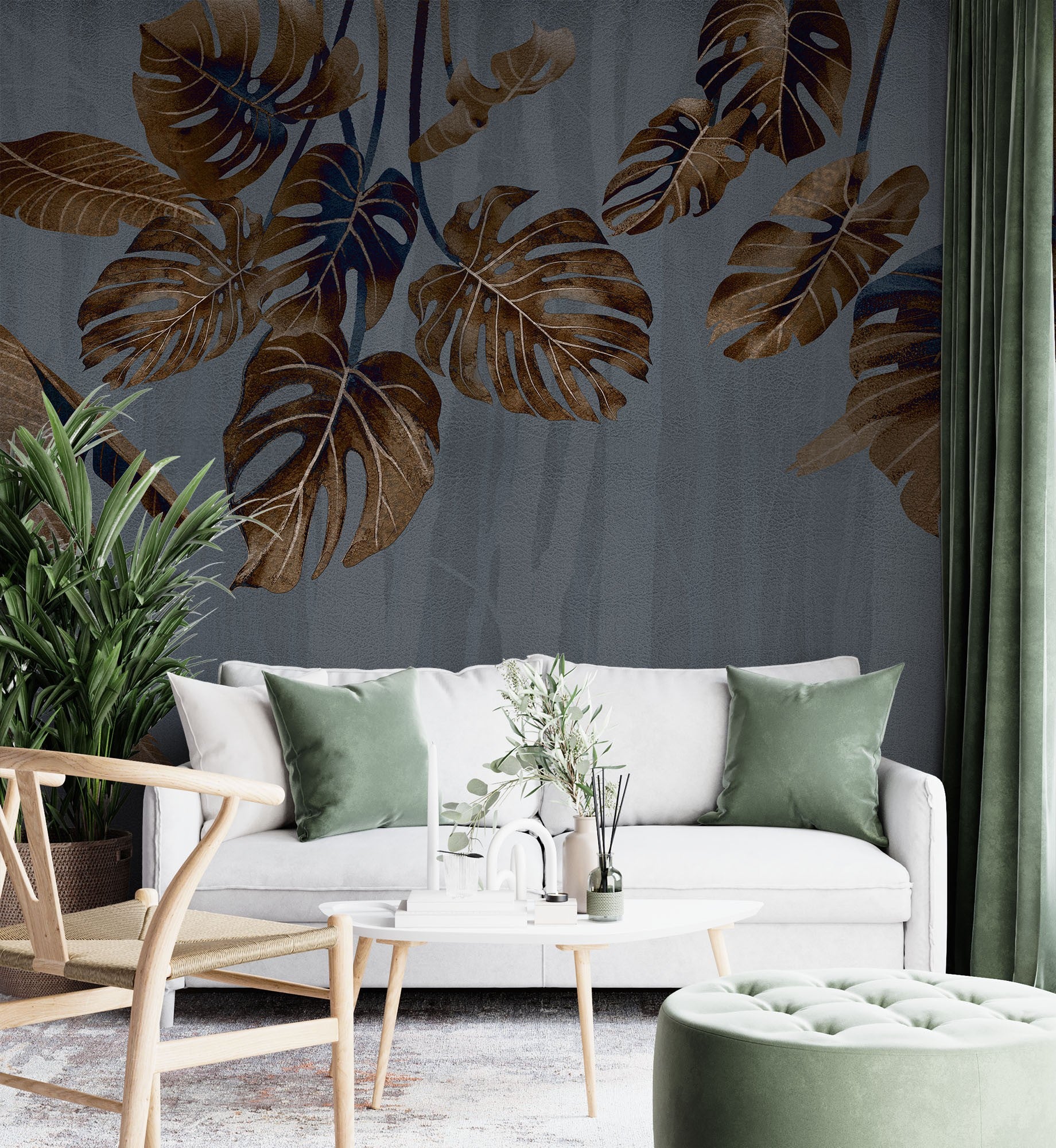 Tropical Leaves Floral Leaves Dark Wallpaper Mural
