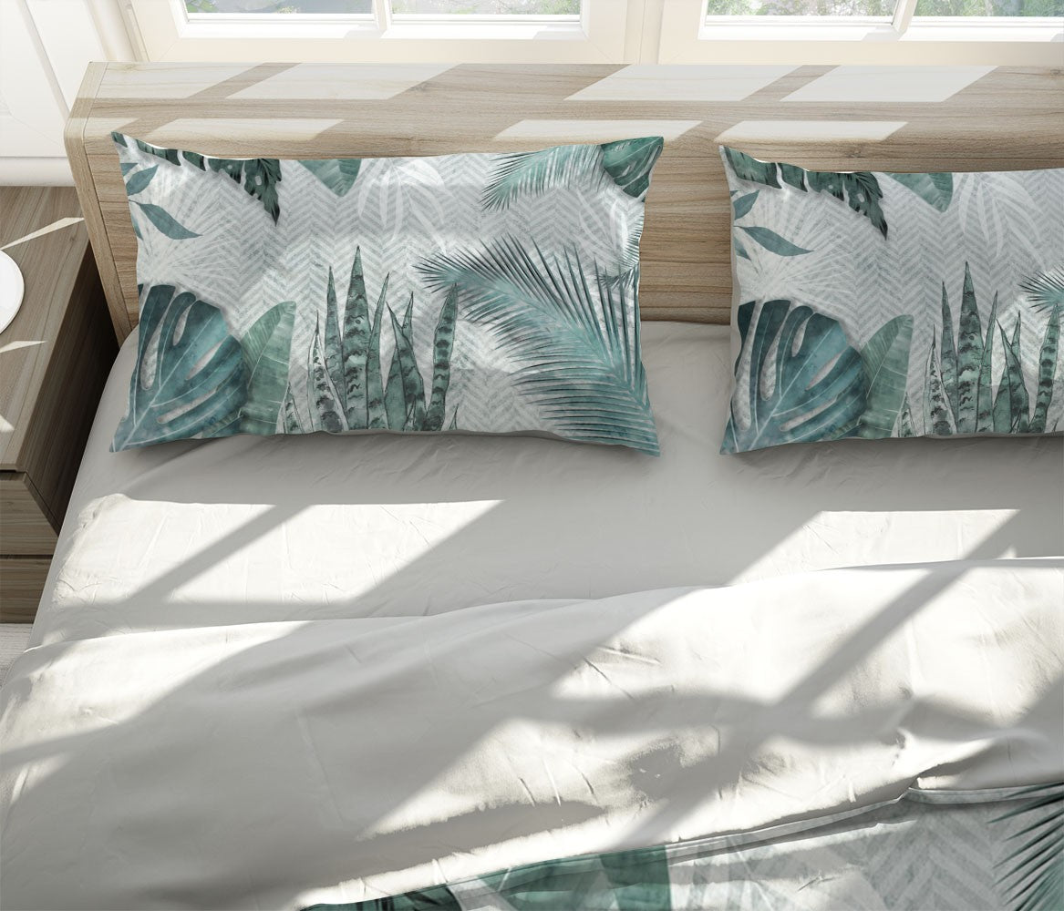 Tropical Leaves Floral Green 3D Duvet Cover Set W Pillow Cover, Single Double Queen King Size, Printed Cotton Quilt Doona Cover 3 Pcs