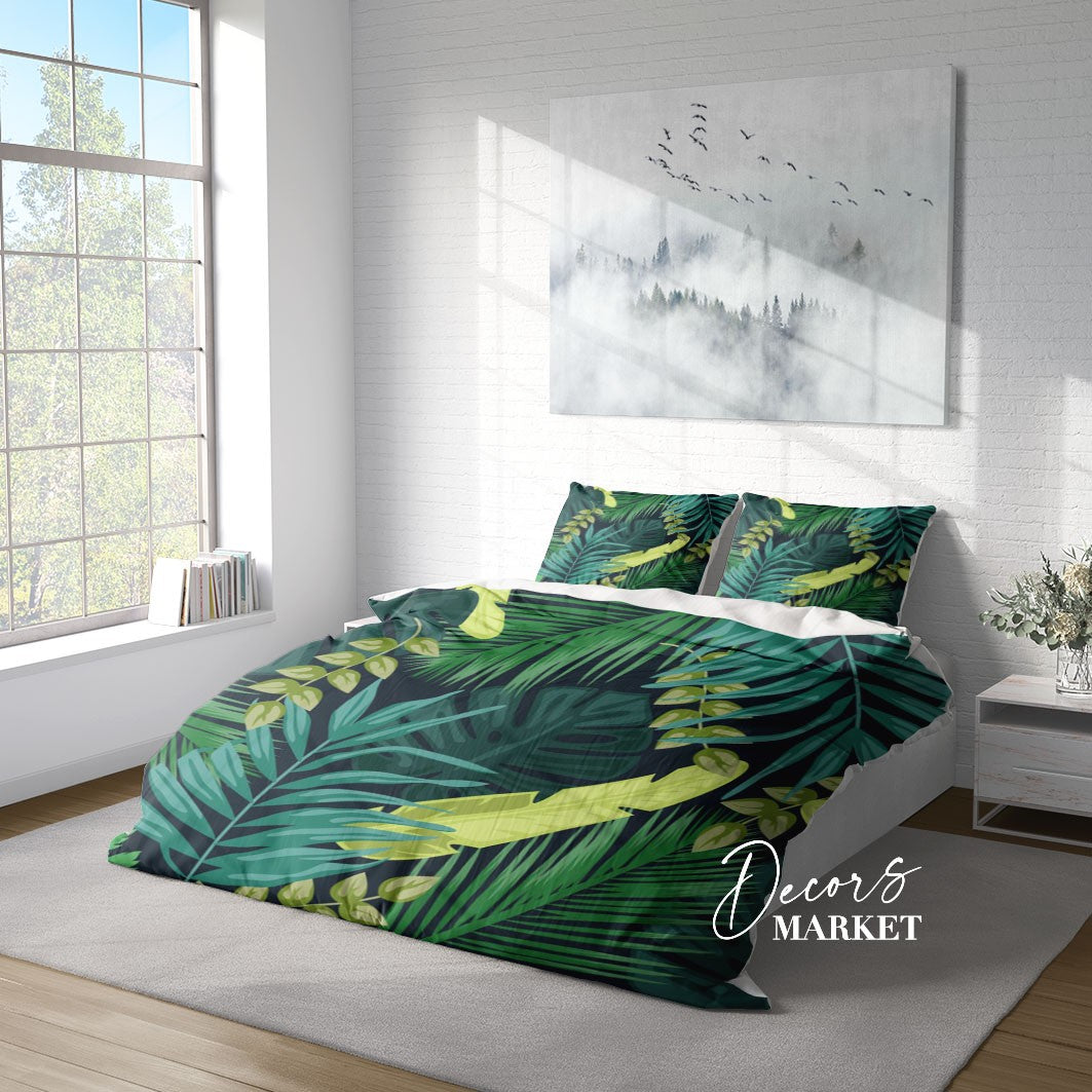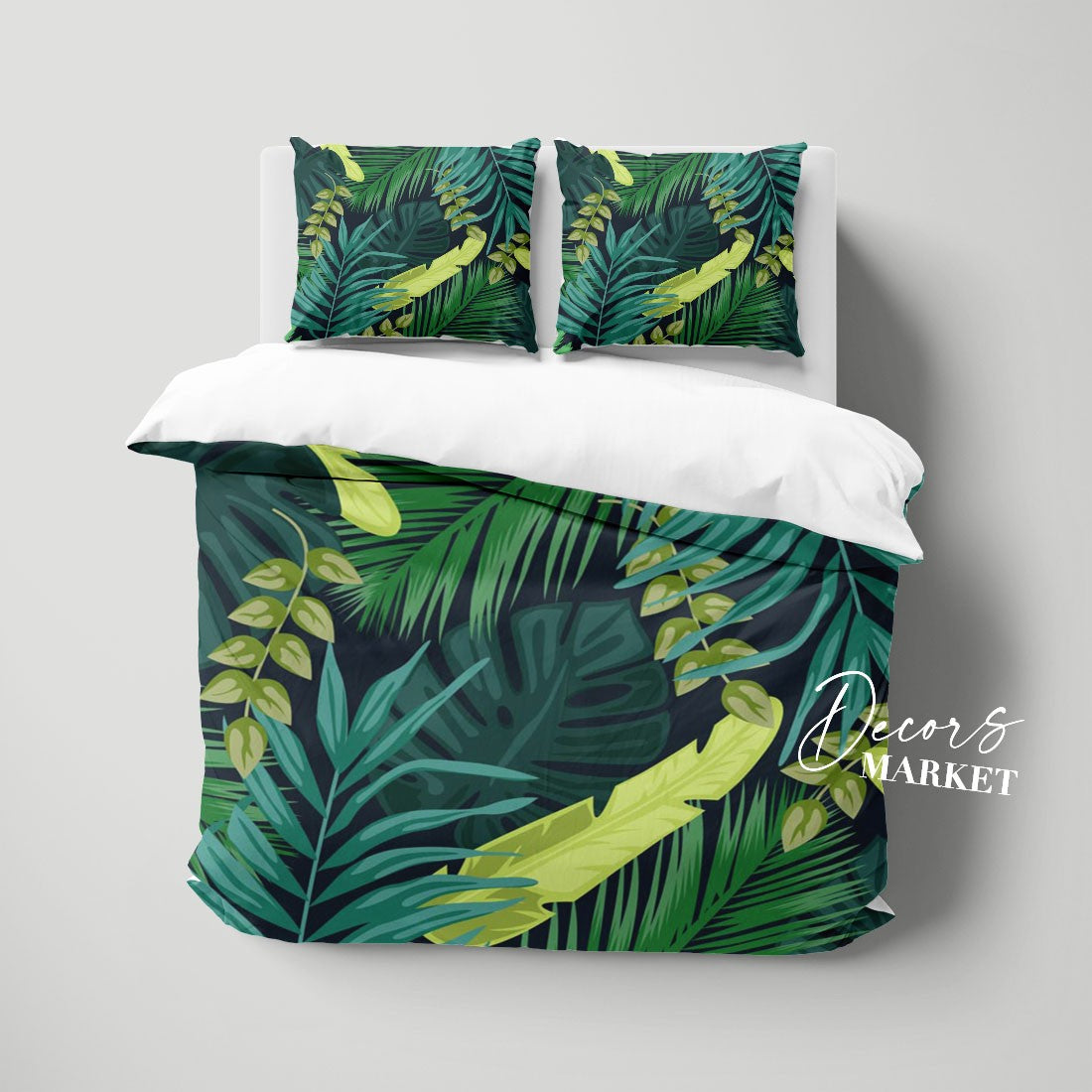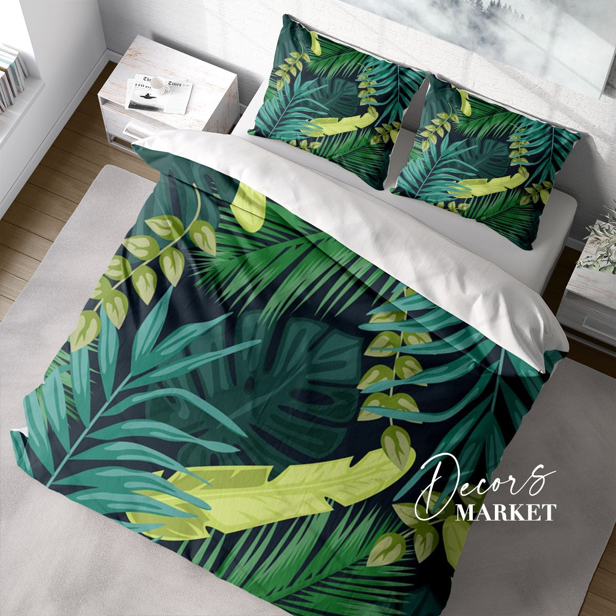 Tropical Leaves Duvet Cover Set w Pillowcases, Green Floral Leaves 3D Quilt Cover, 3pc Single Double Queen King Size Doona Cover