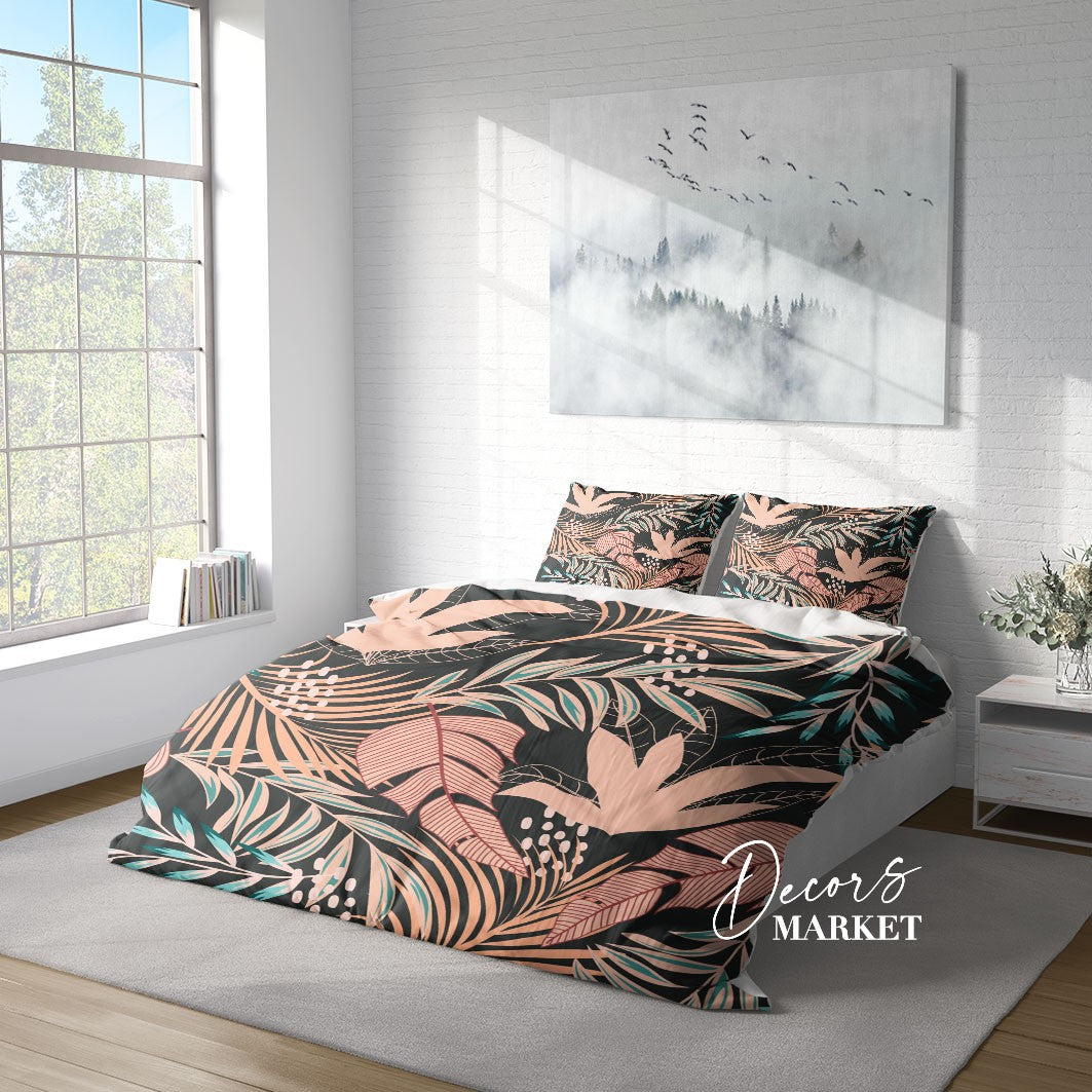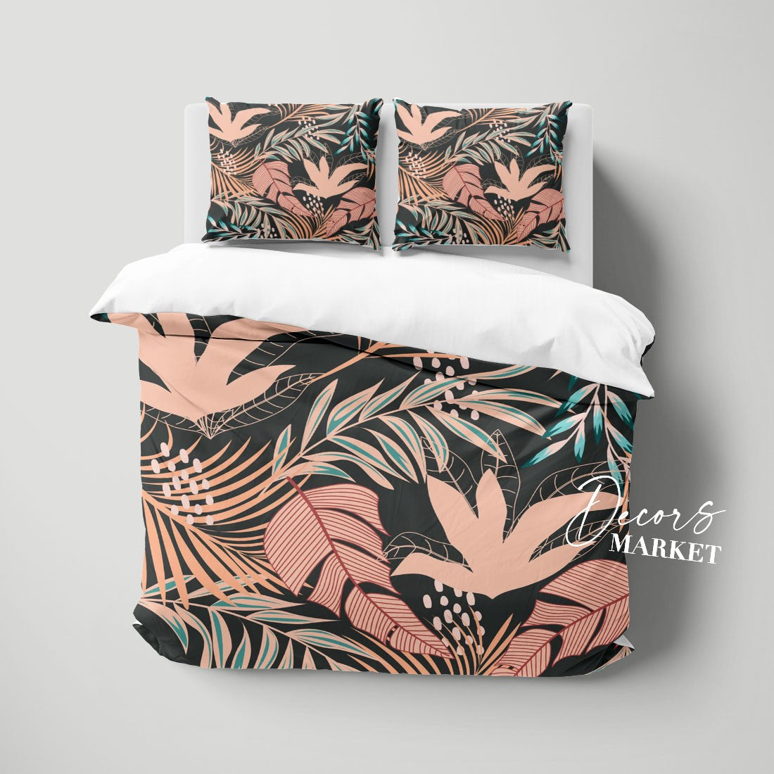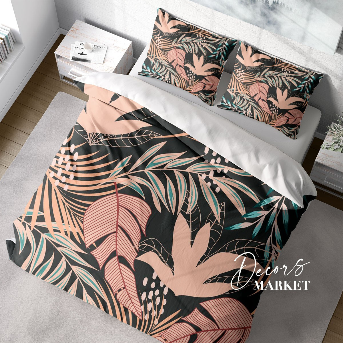 Tropical Leaves Duvet Cover Set w Pillowcases, Pink Floral Leaves 3D Quilt Cover, 3pc Single Double Queen King Size Doona Cover