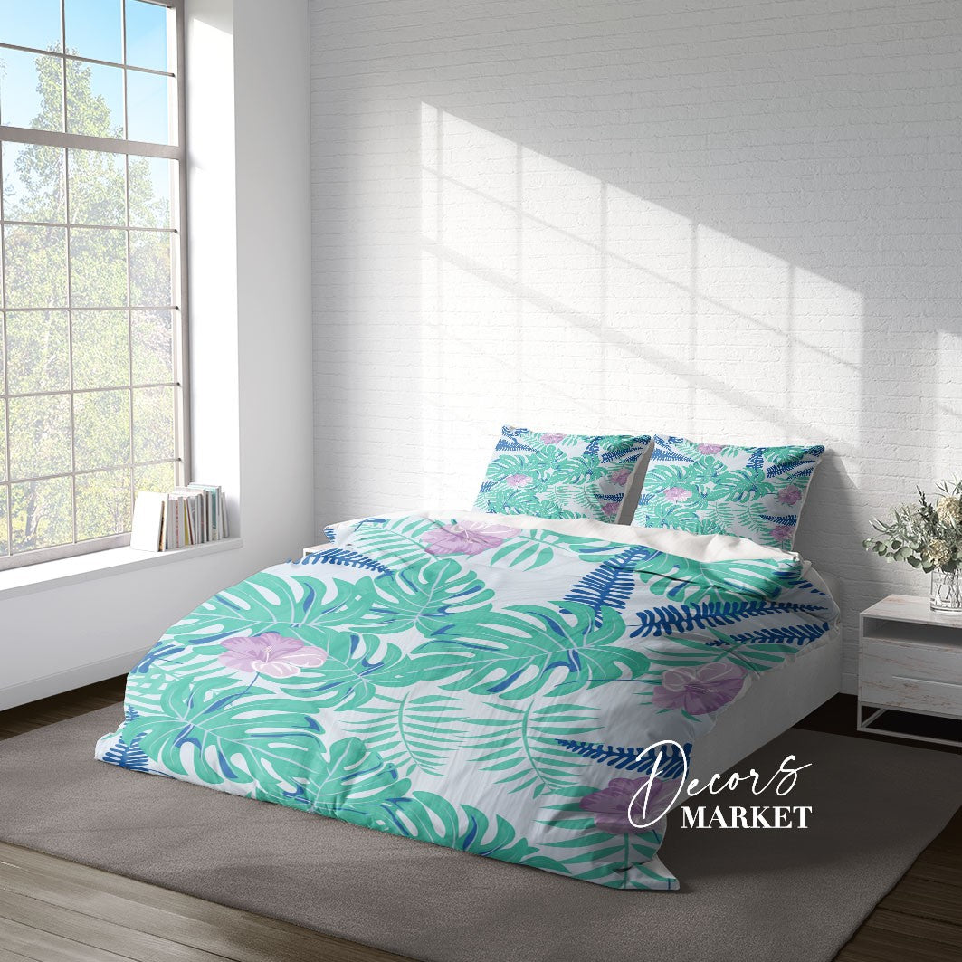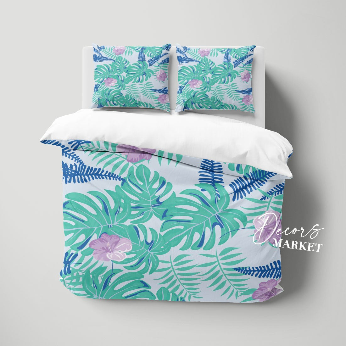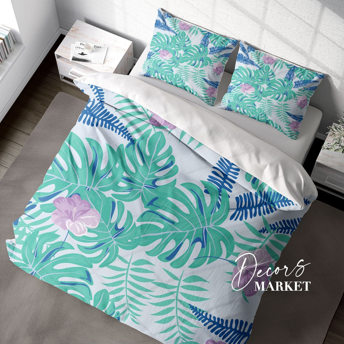 Tropical Leaves Duvet Cover Set w Pillowcases, Green Floral Patterns 3D Quilt Cover, 3pc Single Double Queen King Size Doona Cover