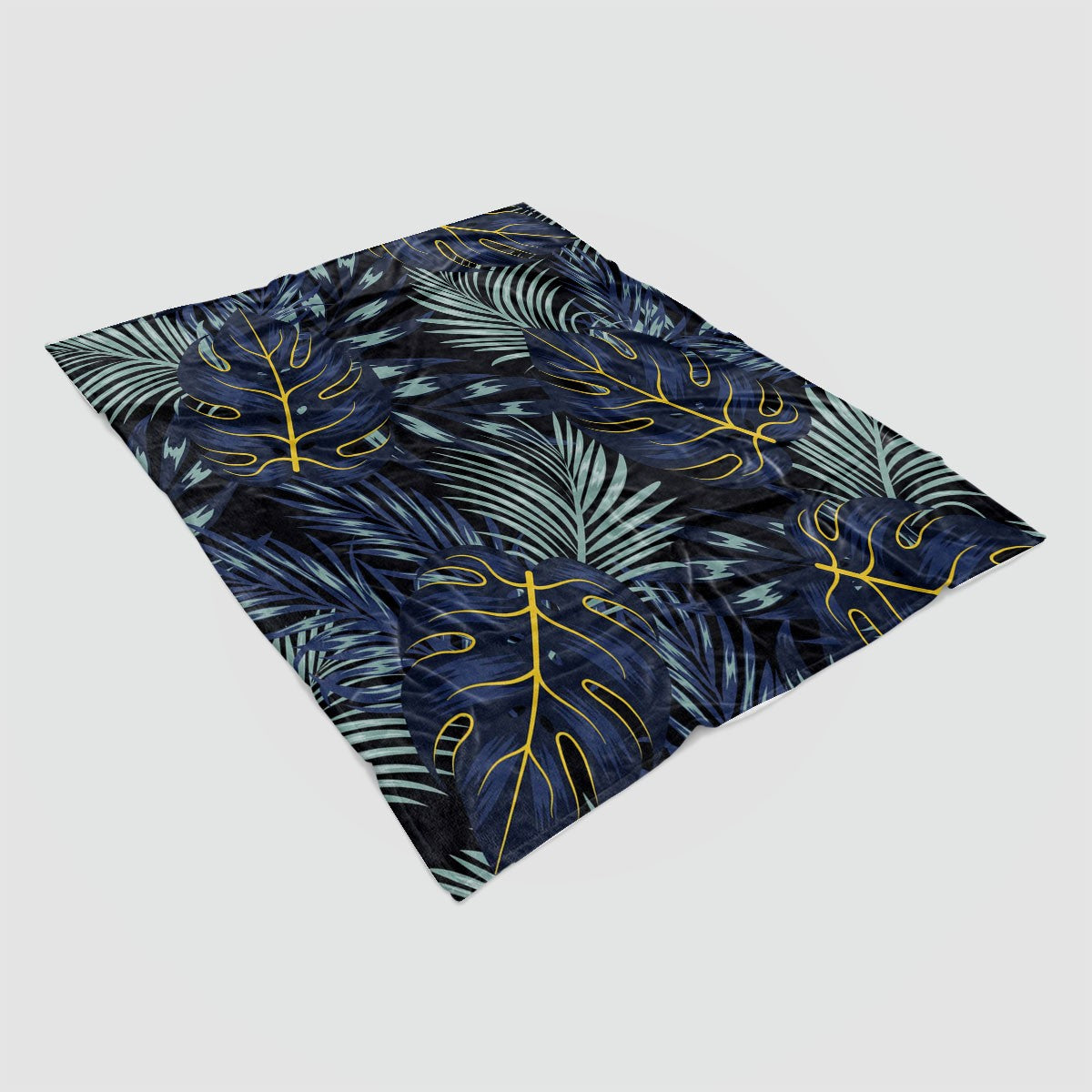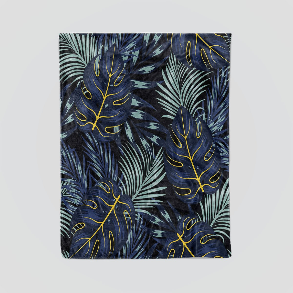 Tropical Leaves Floral Leaves Dark Personalized Throw Blanket Custom Fleece Sherpa Throw