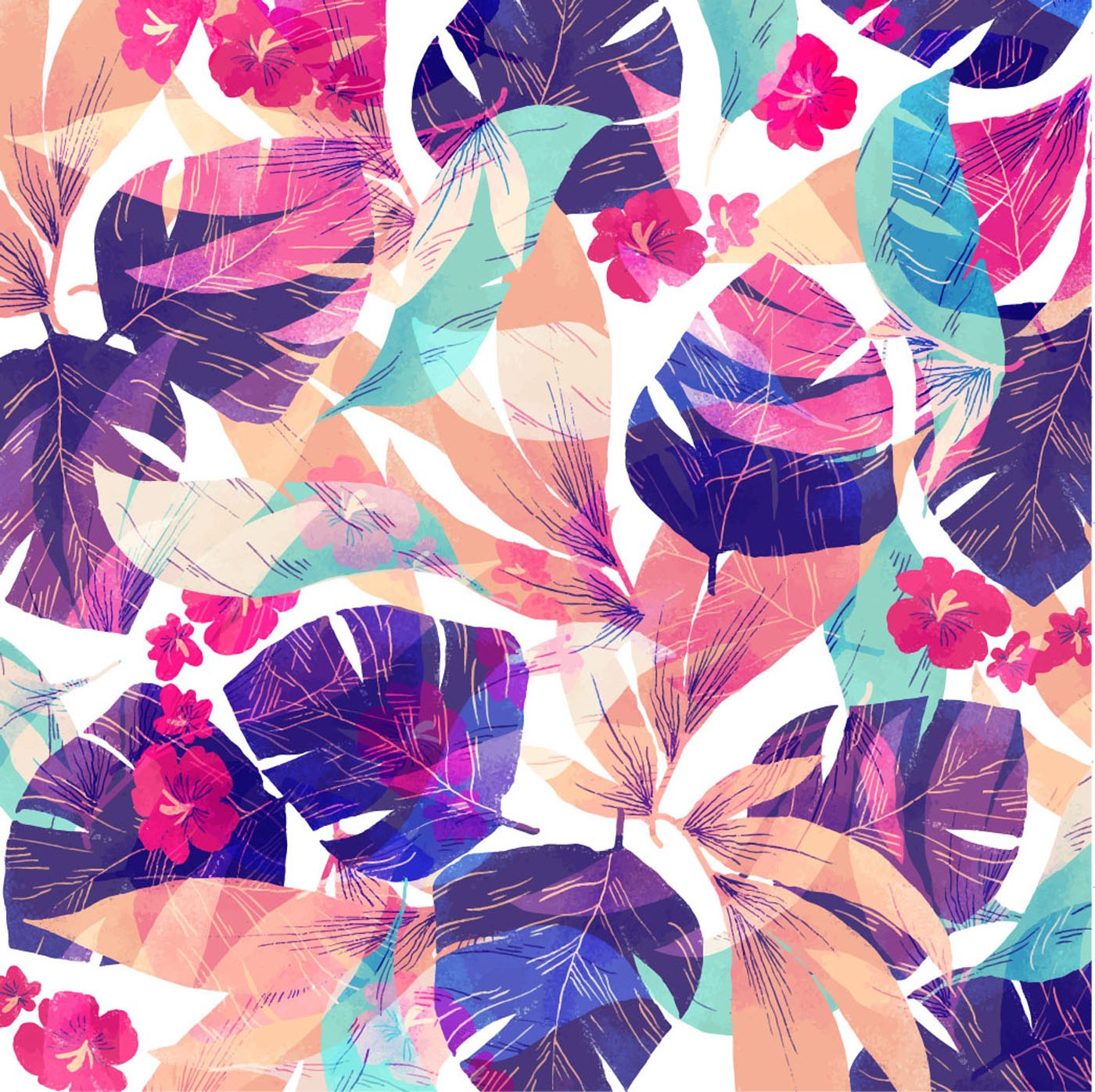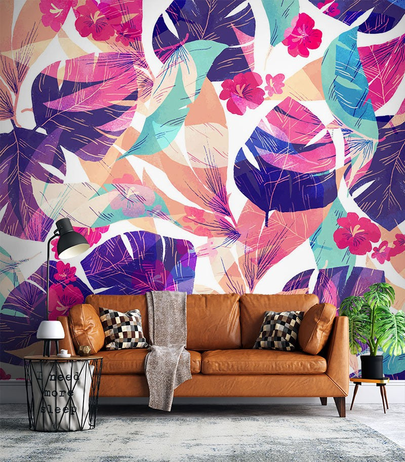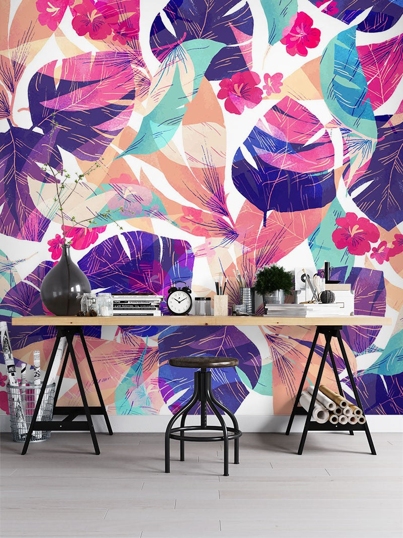 Tropical Leaves Floral Purple Wallpaper Mural,Self-Adhesive Peel And Stick 3D Wall Art,Removable Bedroom Wall Decor