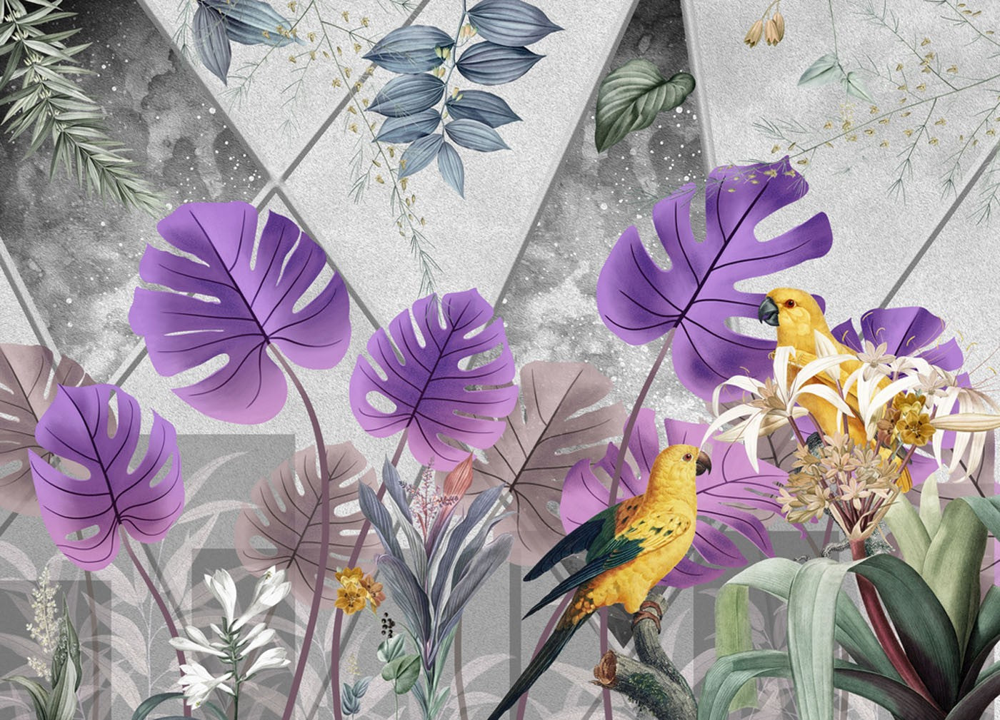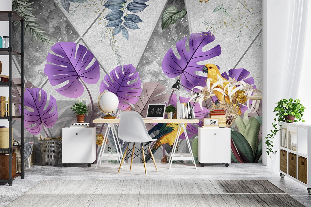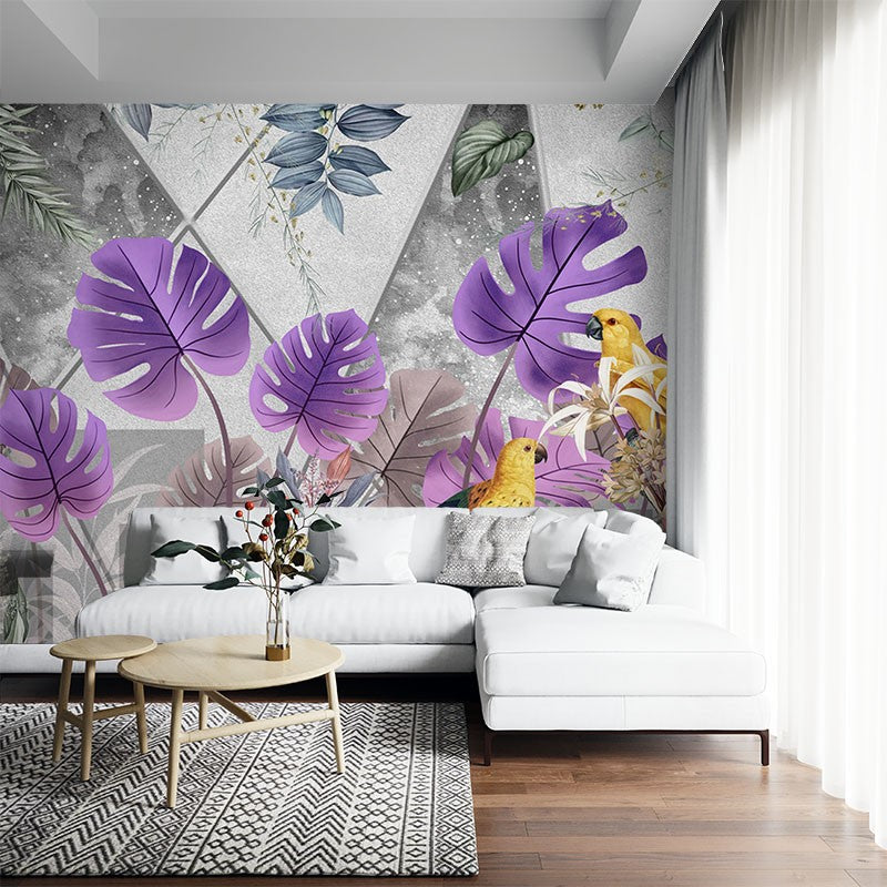 Tropical Leaves Floral Purple Wallpaper Mural,Self-Adhesive Peel And Stick 3D Wall Paper,Removable Designer Wall Decor