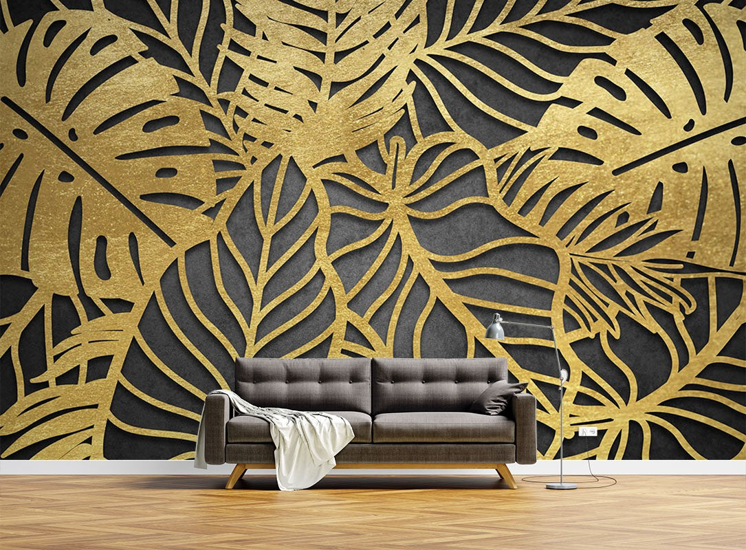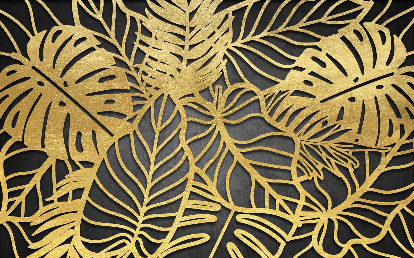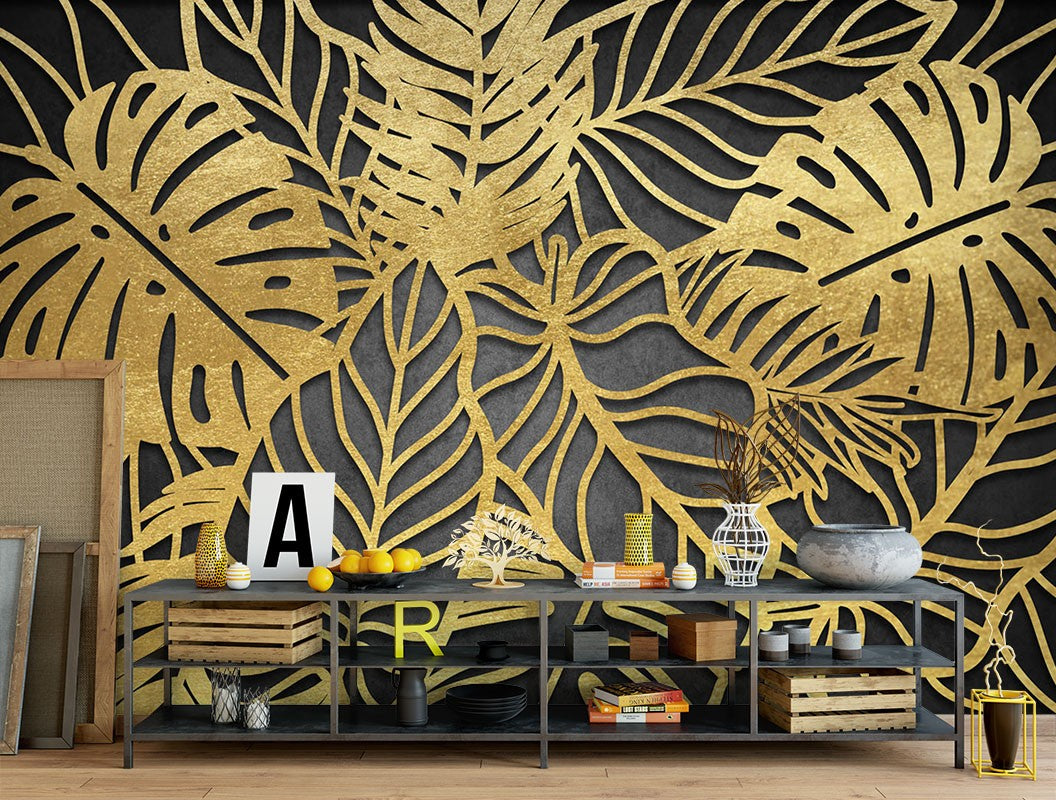 Tropical Leaves Texture Patterns Gold Wallpaper Mural,Self-Adhesive Peel And Stick 3D Wall Decor,Removable Australian Company Wall Decor