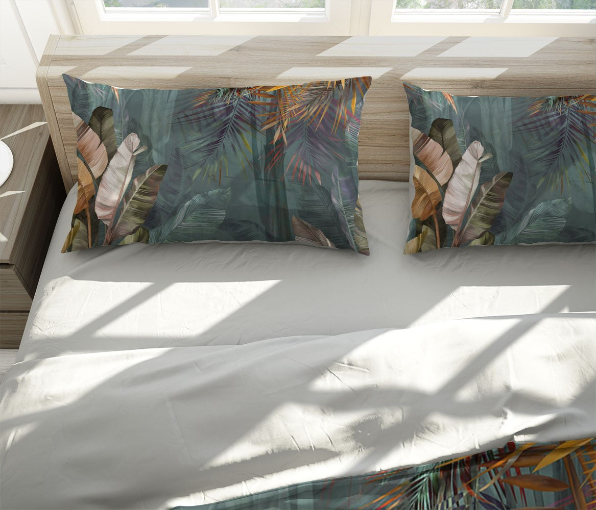 Tropical Trees Forest Jungle Blue 3D Duvet Cover Set W Pillow Cover, Single Double Queen King Size, Printed Cotton Quilt Doona Cover 3 Pcs