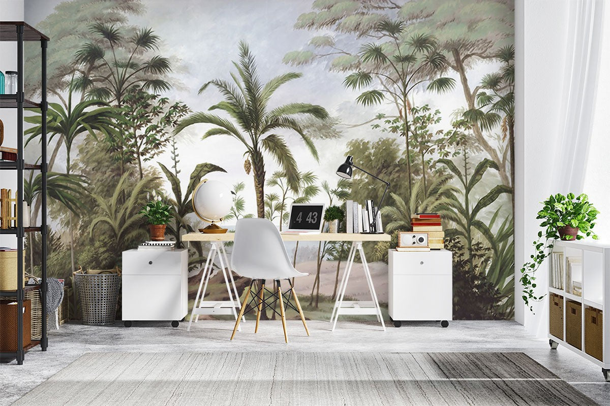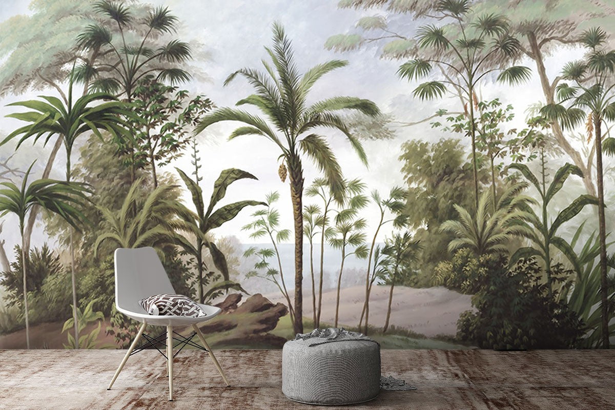Tropical Trees Forest Jungle Green Wallpaper Mural,Self-Adhesive Peel And Stick 3D Wall Mural,Designer Removable Wall Decor