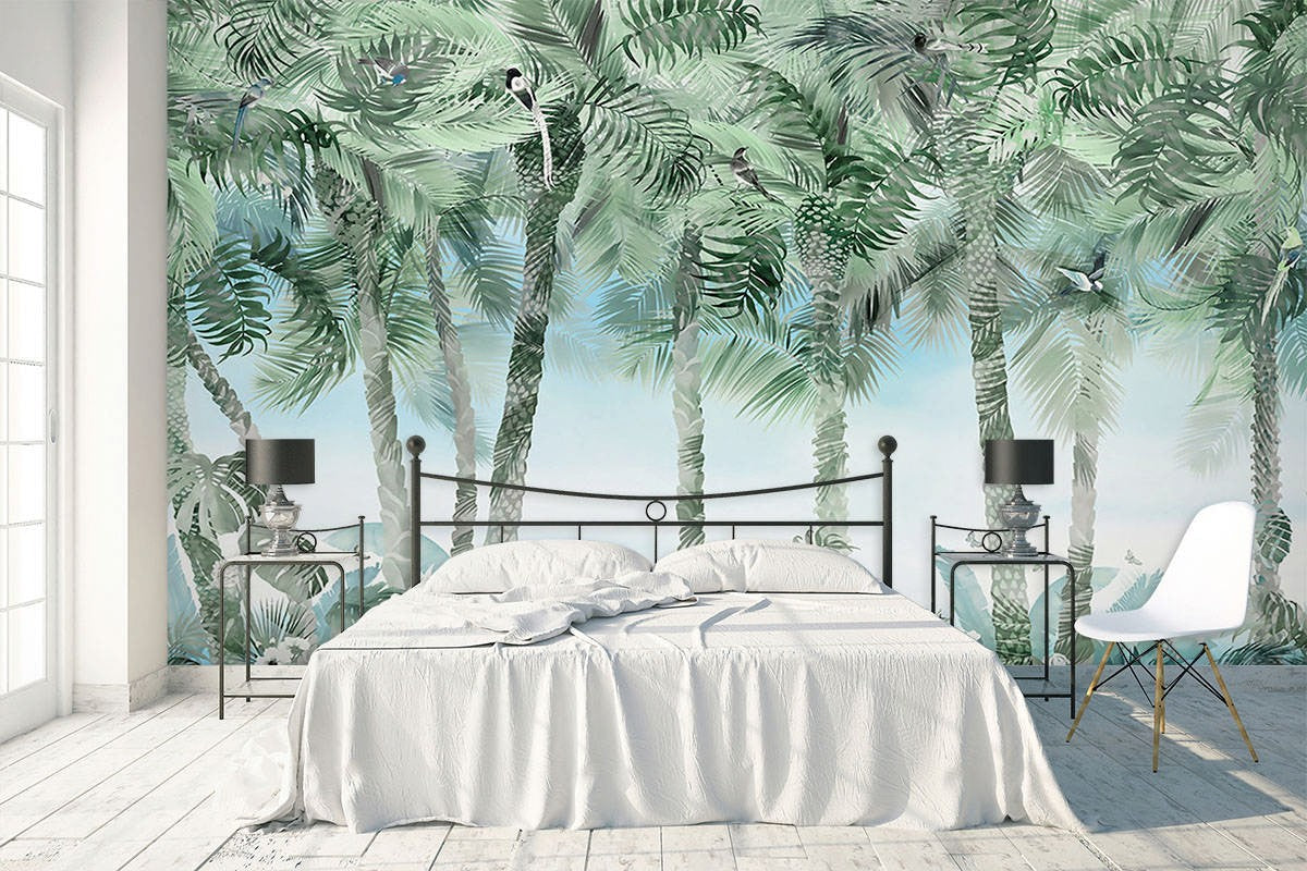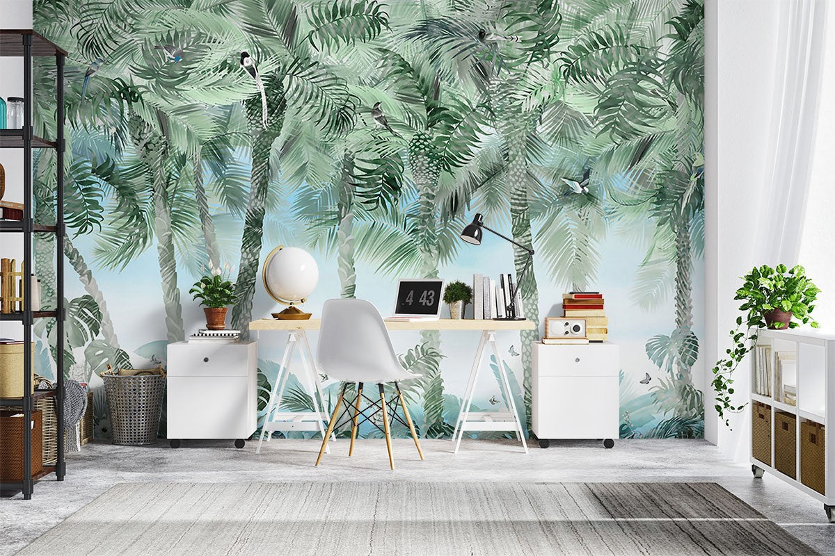 Tropical Trees Forest Jungle Green Wallpaper Mural,Self-Adhesive Peel And Stick 3D Wall Decal,Removable Australian Company Wall Decor