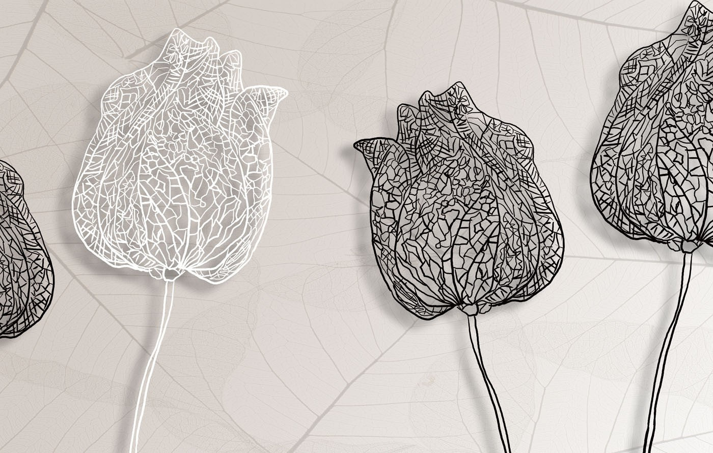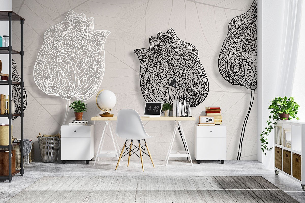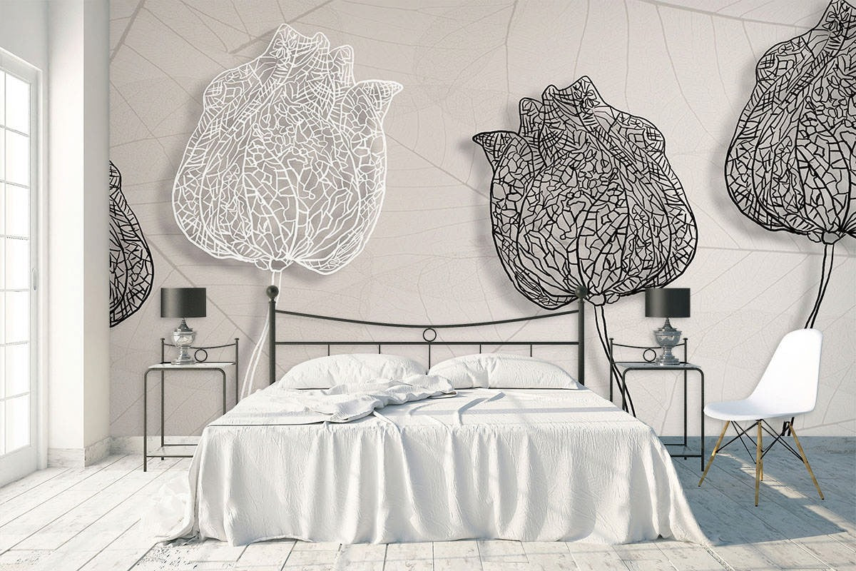 Tulips Floral Dutch Flowers Black&White Wallpaper Mural,Self-Adhesive Peel And Stick 3D Wall Decal,Australian Company Wall Decor