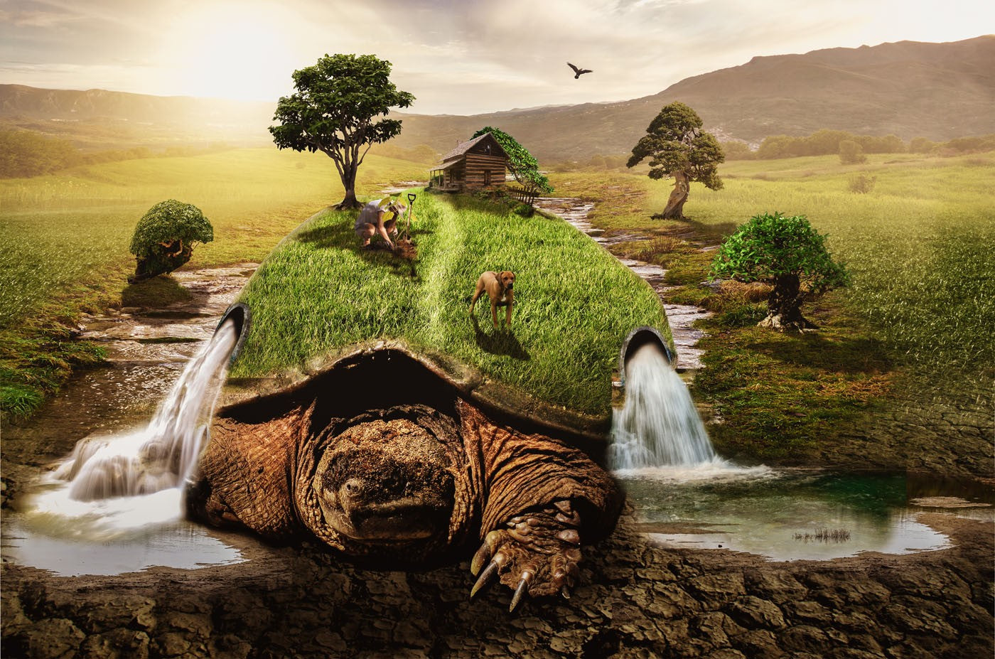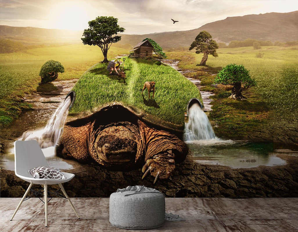 Turtle Land Art Fantasy Brown Wallpaper Mural,Self-Adhesive Peel And Stick 3D Wall Decal,Designer Australian Company Wall Decor