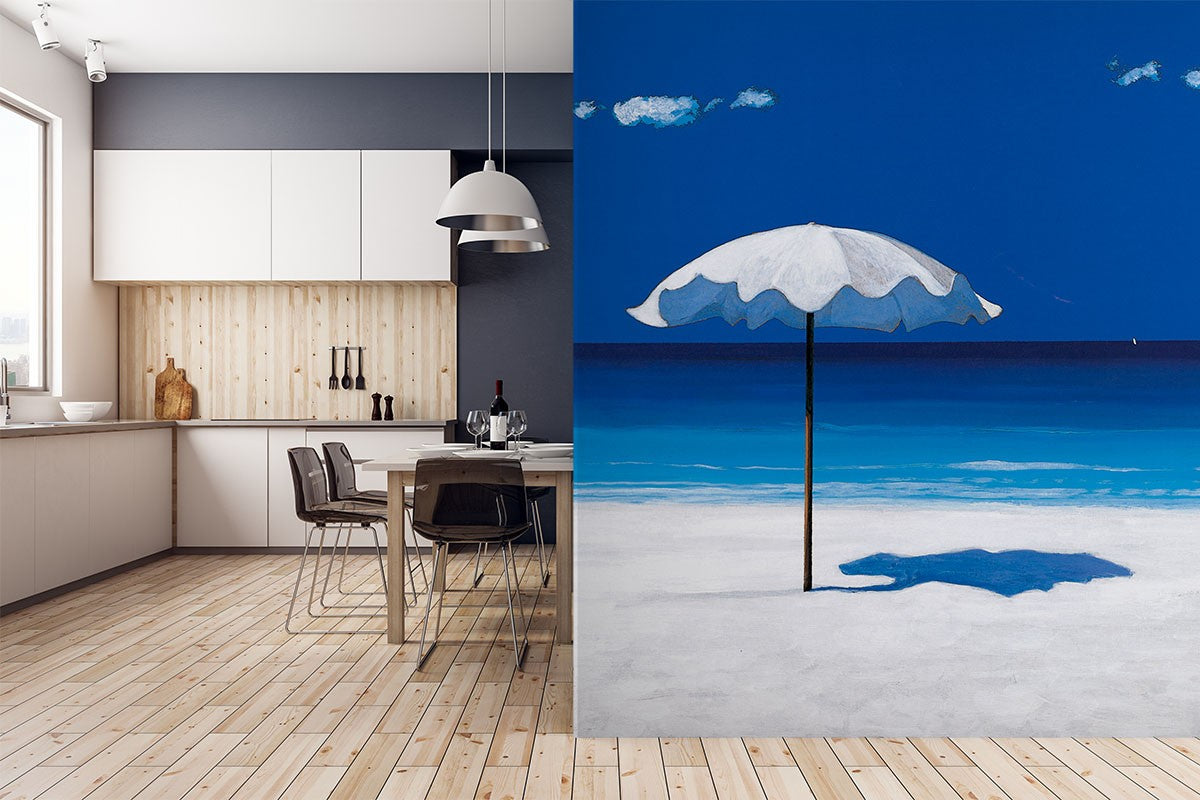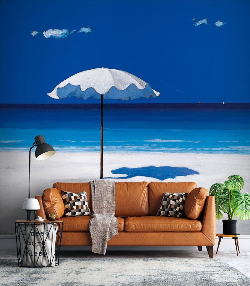 Umbrellas Horizon Beach Blue Wallpaper Mural,Self-Adhesive Peel And Stick 3D Wall Decor,Removable Australian Company Wall Decor