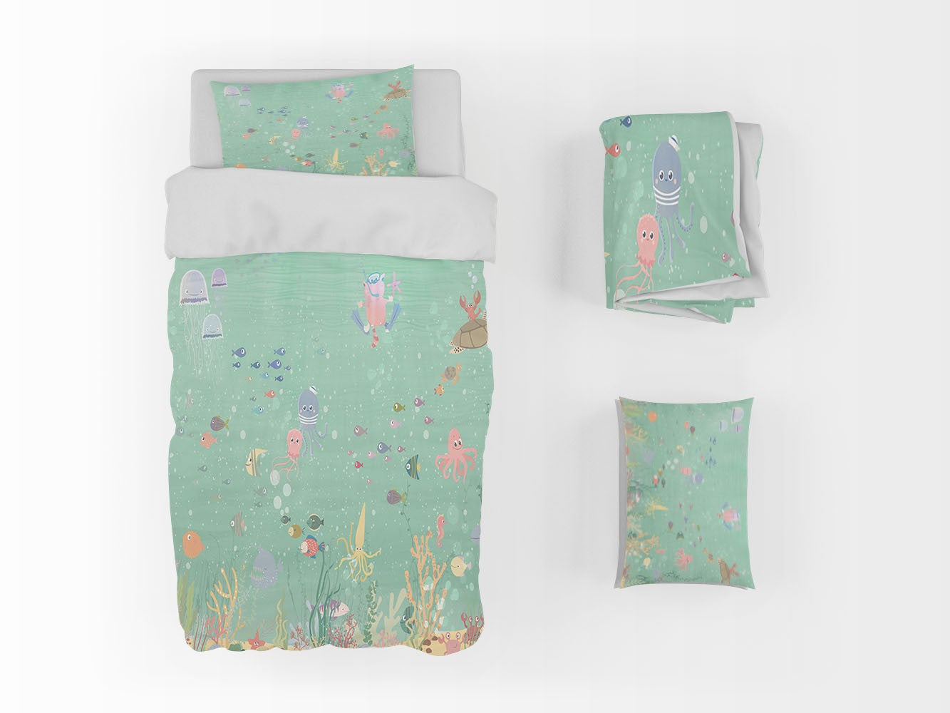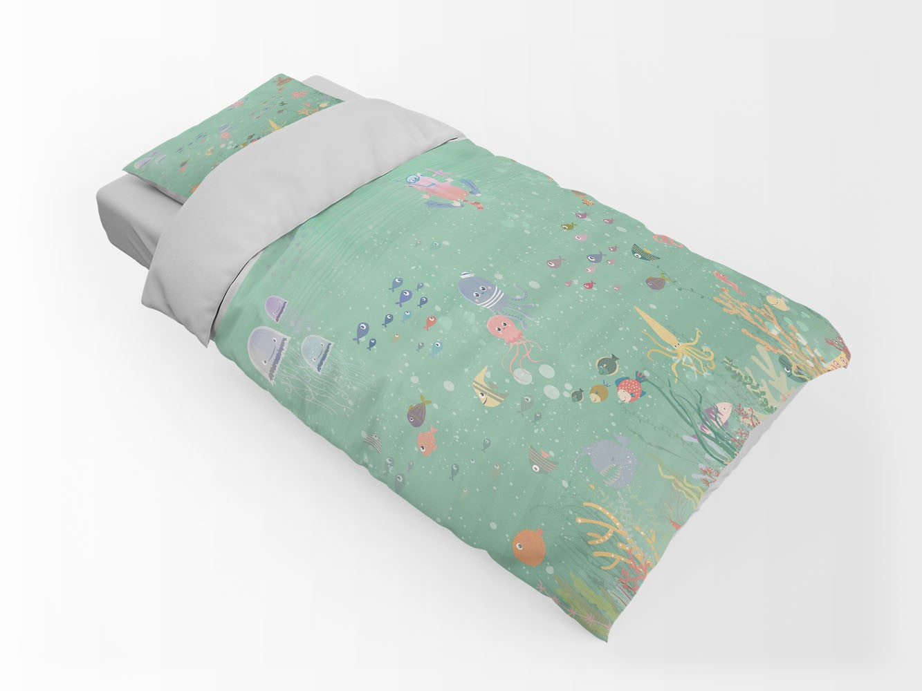 Underwater Coral Kids Animal Green 3D Duvet Cover Set W Pillow Cover, Single Double Queen King Size, Printed Cotton Quilt Doona Cover 3 Pcs