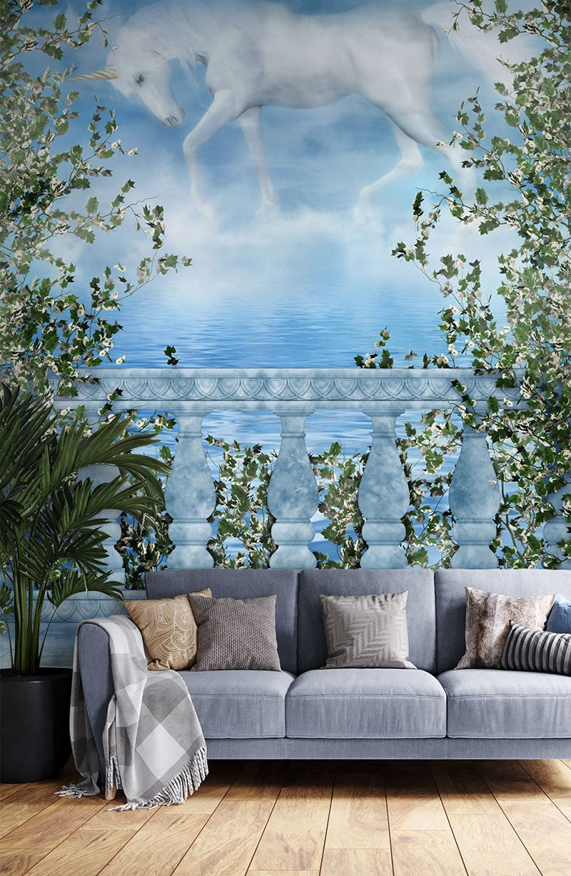 Unicorn Animals Fantasy Animals Blue Wallpaper Mural,Self-Adhesive Peel And Stick 3D Wall Decal,Designer Australian Company Wall Decor
