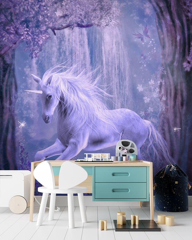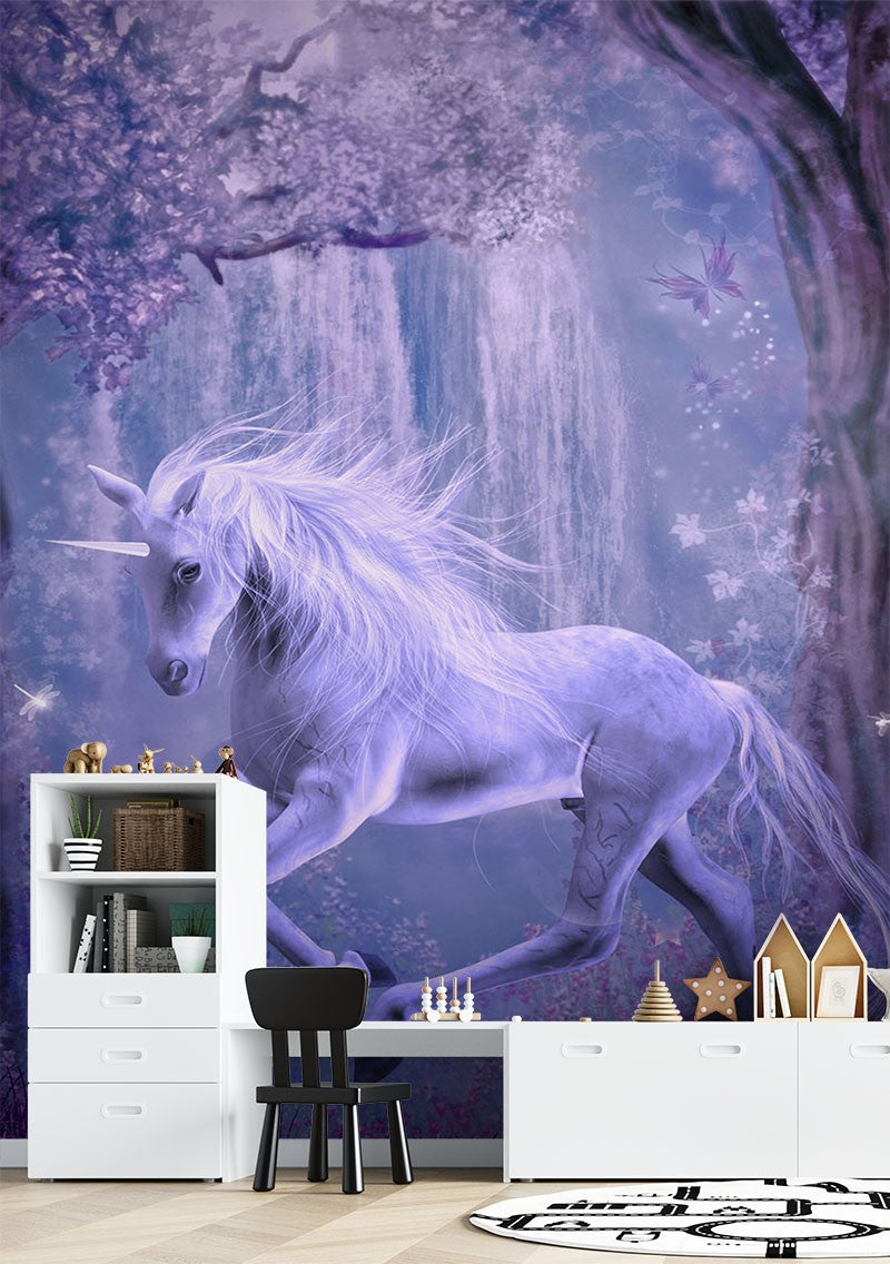 Unicorn Dutch Flowers Kids Fantasy Purple Wallpaper Mural,Self-Adhesive Peel And Stick 3D Wall Paper,Removable Bedroom Wall Decor