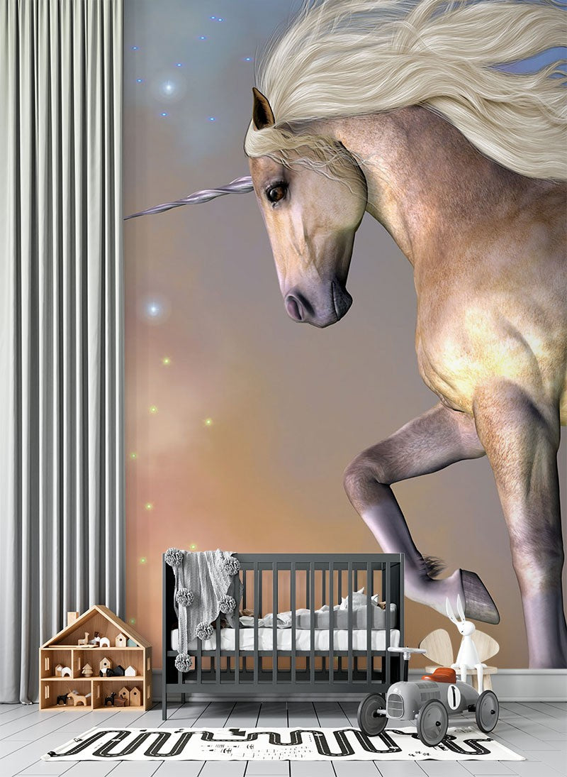 Unicorn Fairy Kids Fantasy Brown Wallpaper Mural,Self-Adhesive Peel And Stick 3D Wall Mural,Bedroom Australian Company Wall Decor