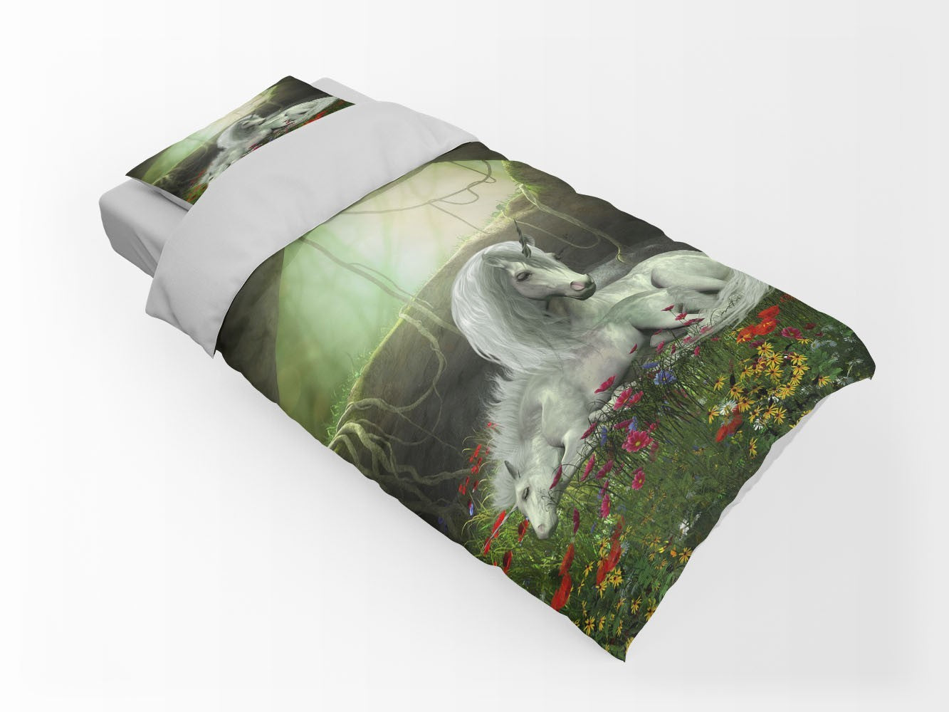 Unicorn Family Duvet Cover Set W Pillow Cover, Green Kids Animal 3D Quilt Cover, Single Double Queen King Size Doona Cover