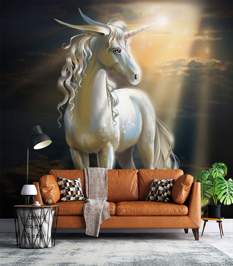 Unicorn Fantasy Animals Black Wallpaper Mural,Self-Adhesive Peel And Stick 3D Wall Art,Bedroom Australian Company Wall Decor