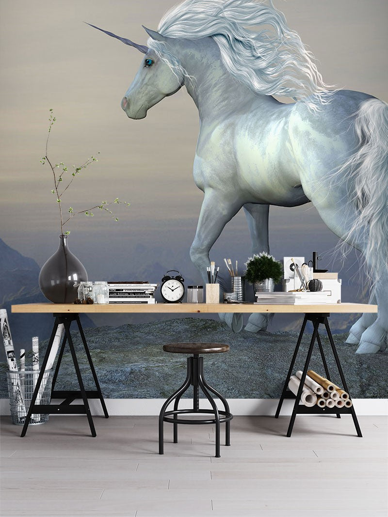 Unicorn Fantasy Animals Gray Wallpaper Mural,Self-Adhesive Peel And Stick 3D Wall Paper,Bedroom Designer Wall Decor