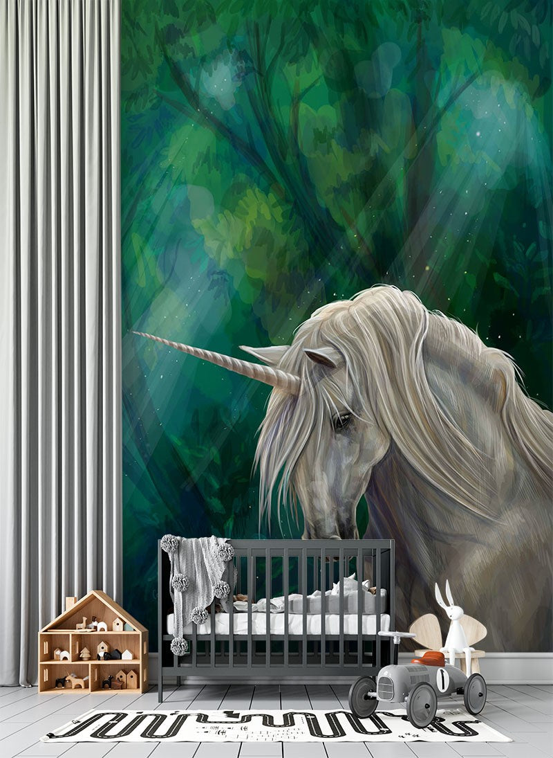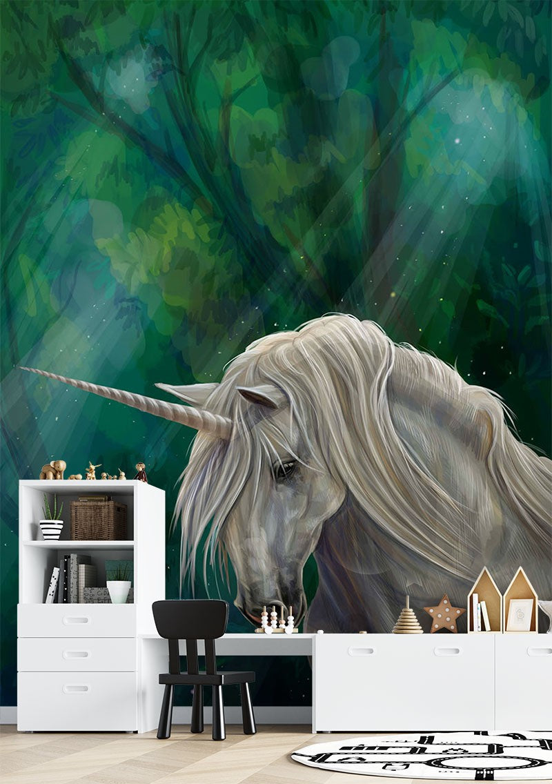 Unicorn Kids Fantasy Green Wallpaper Mural,Self-Adhesive Peel And Stick 3D Wall Mural,Australian Company Bedroom Wall Decor
