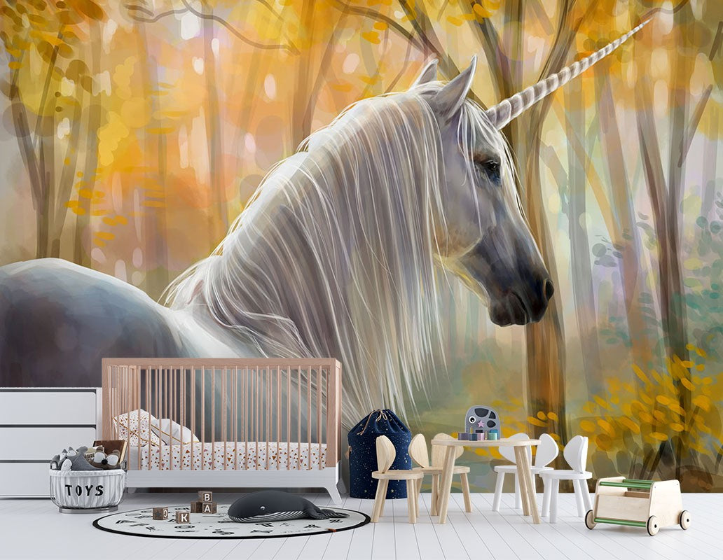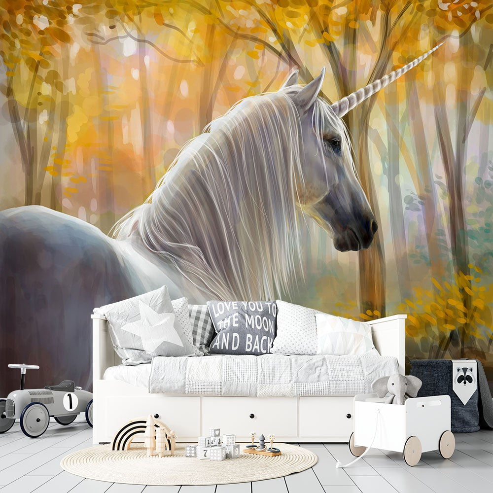 Unicorn Kids Fantasy Orange Wallpaper Mural,Self-Adhesive Peel And Stick 3D Wall Decal,Designer Removable Wall Decor