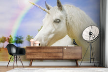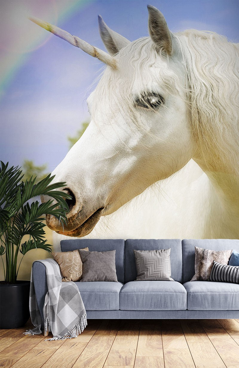 Unicorn Rainbow Kids Fantasy White Wallpaper Mural