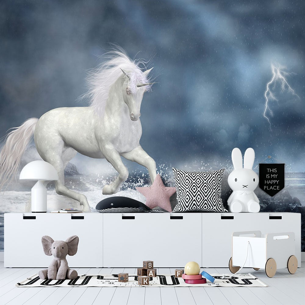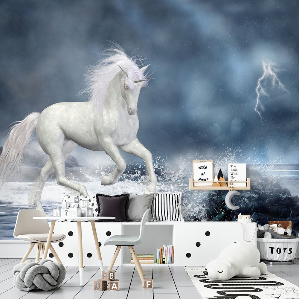 Unicorn Sea Kids Fantasy Blue Wallpaper Mural,Self-Adhesive Peel And Stick 3D Wall Decal,Australian Company Removable Wall Decor