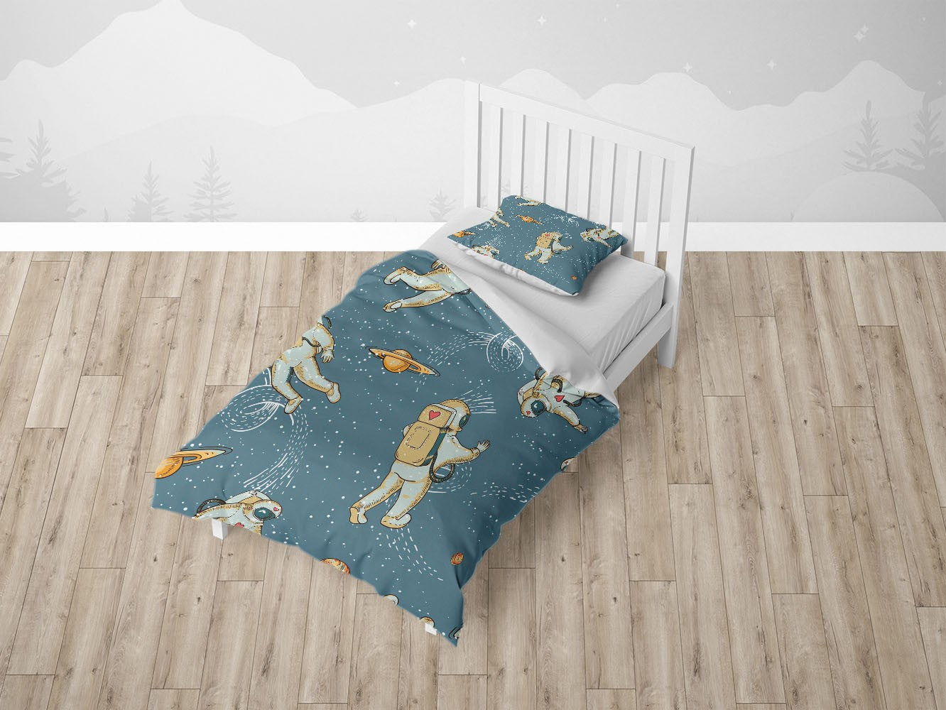 Universe Astronaut Duvet Cover Set w Pillowcases, Blue Kids Cartoon 3D Quilt Cover, 3pc Single Double Queen King Size Doona Cover