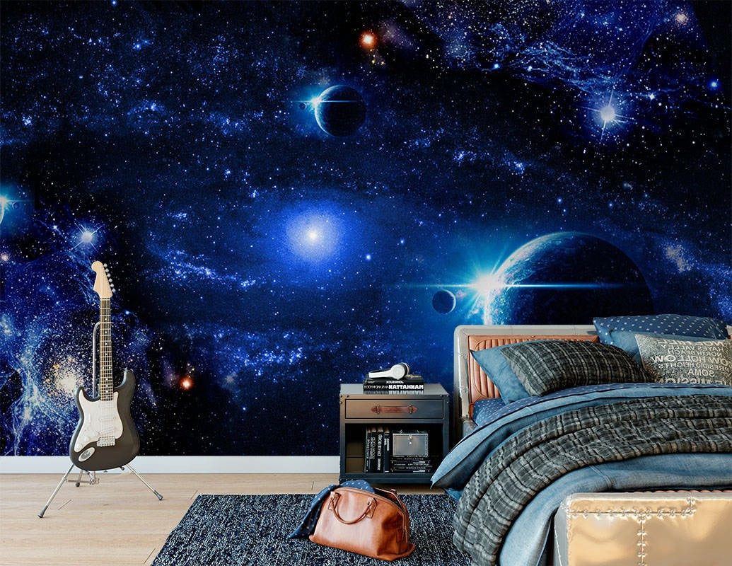Universe Planet Nature Space Blue Wallpaper Mural,Self-Adhesive Peel And Stick 3D Wall Decal,Bedroom Designer Wall Decor