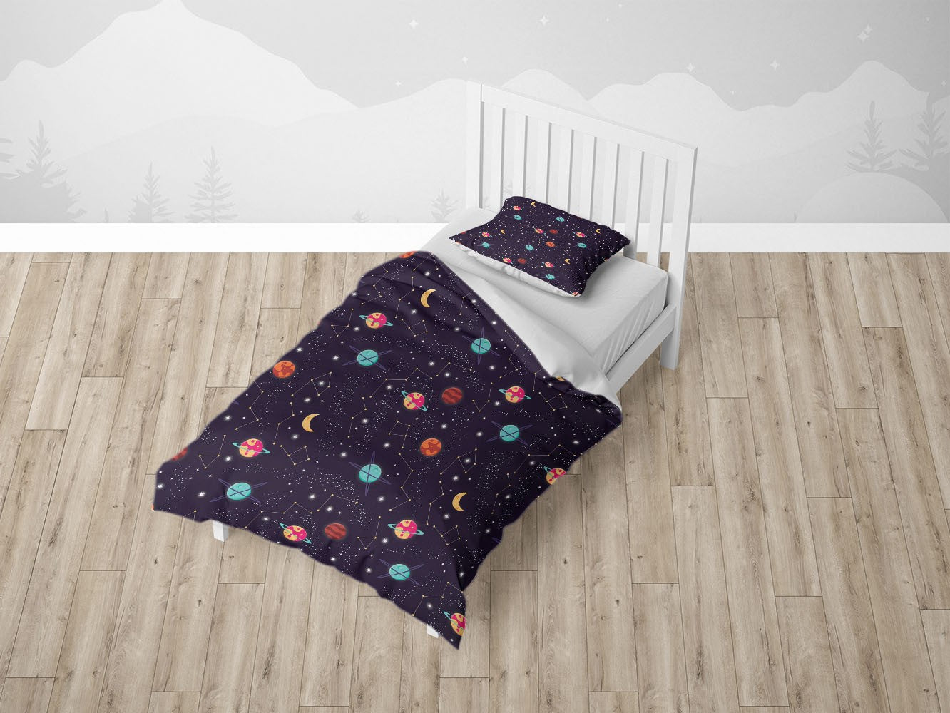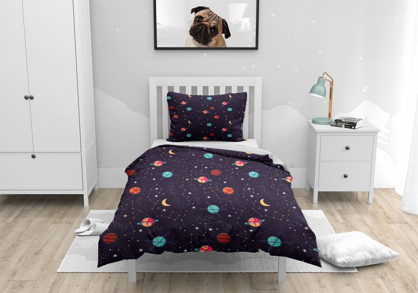 Universe Planet Star Duvet Cover Set w Pillowcases, Dark Kids Patterns 3D Quilt Cover, 3pc Single Double Queen King Size Doona Cover