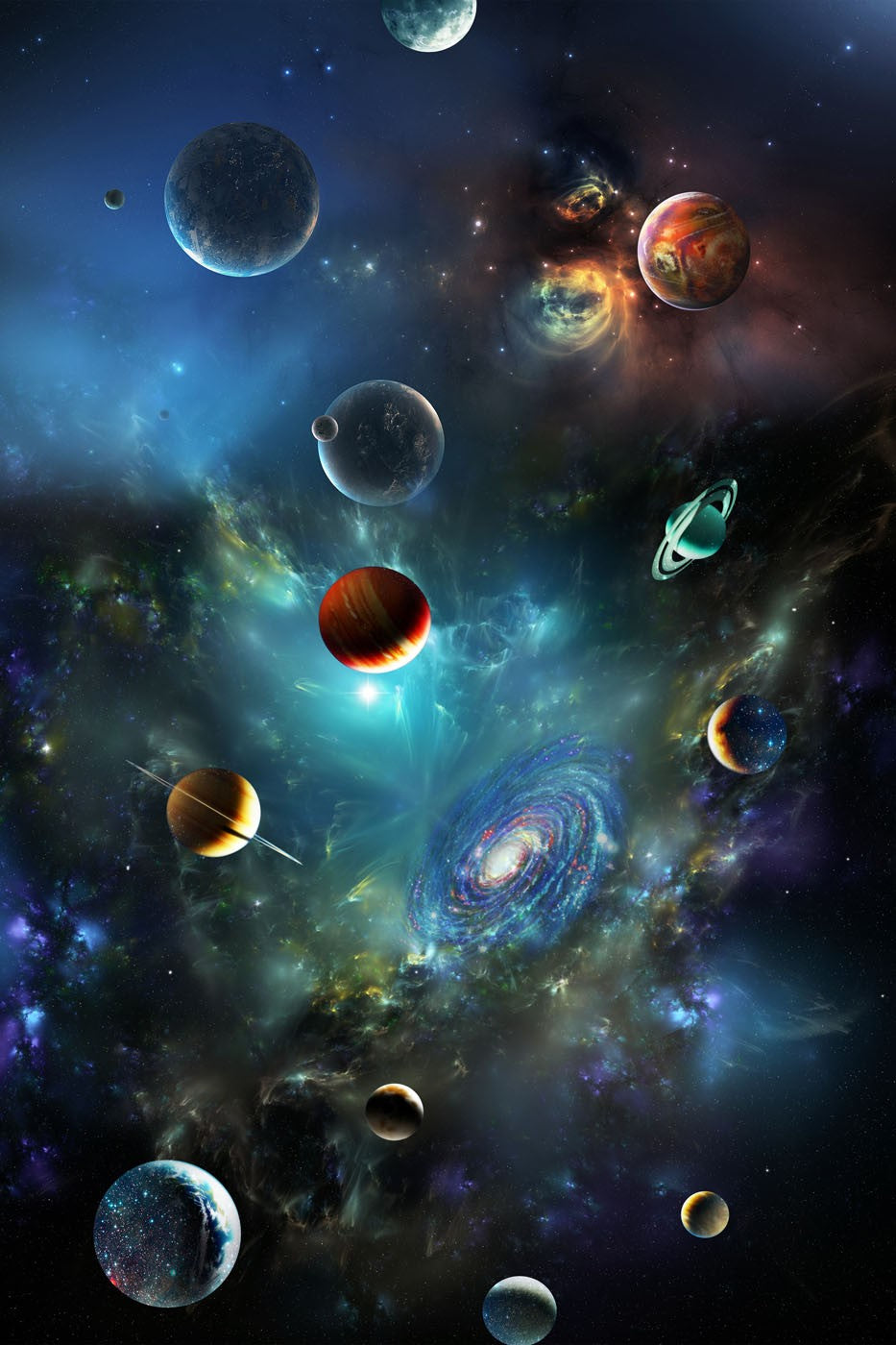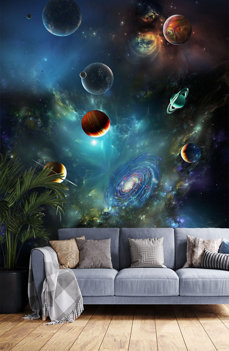 Universe Solar Nature Space Blue Wallpaper Mural,Self-Adhesive Peel And Stick 3D Wall Art,Removable Bedroom Wall Decor