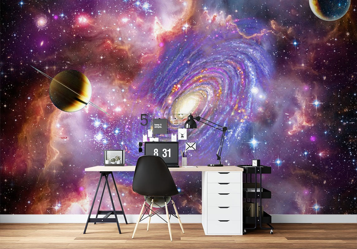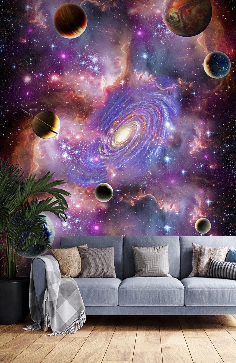 Universe Solar Nature Space Purple Wallpaper Mural,Self-Adhesive Peel And Stick 3D Wall Mural,Australian Company Bedroom Wall Decor