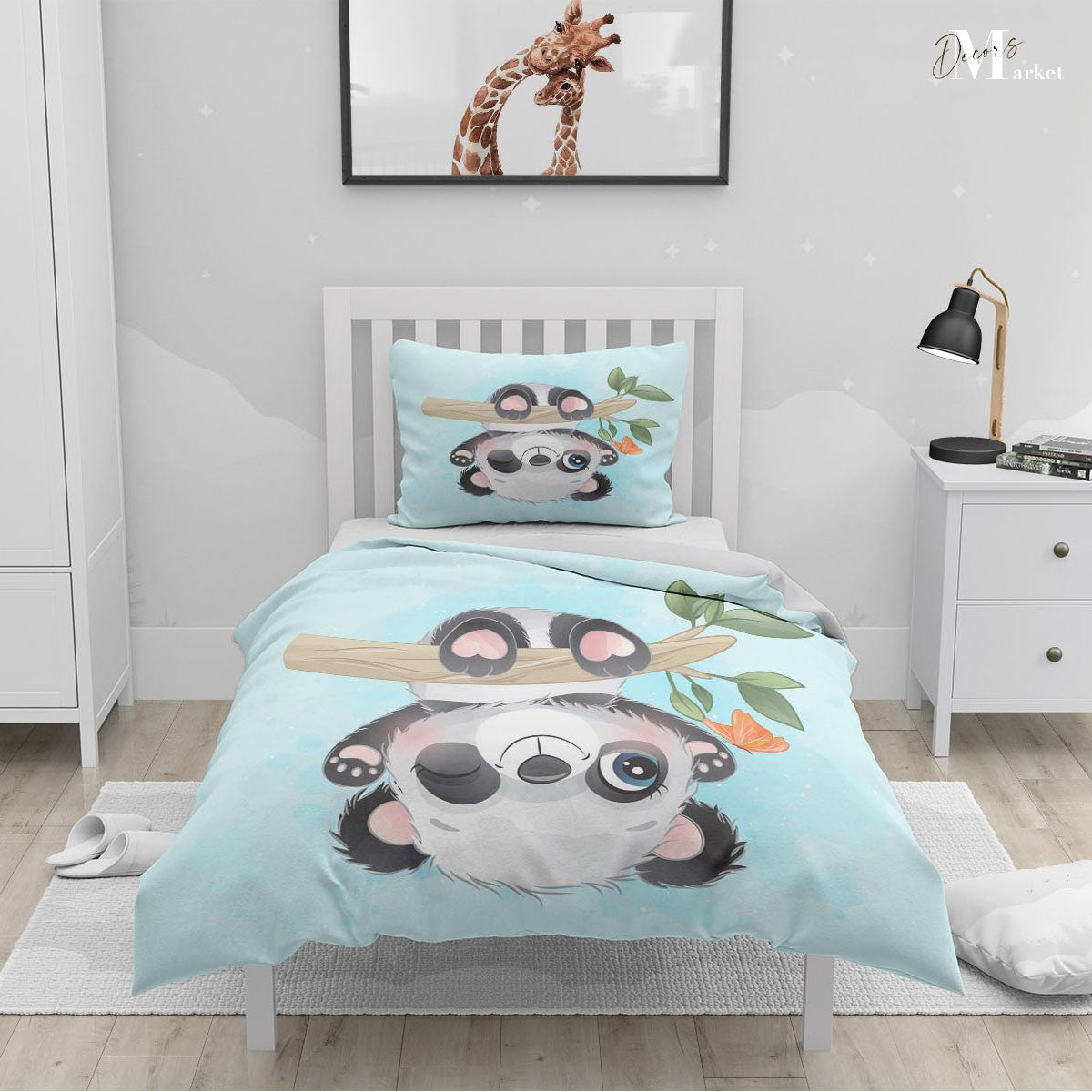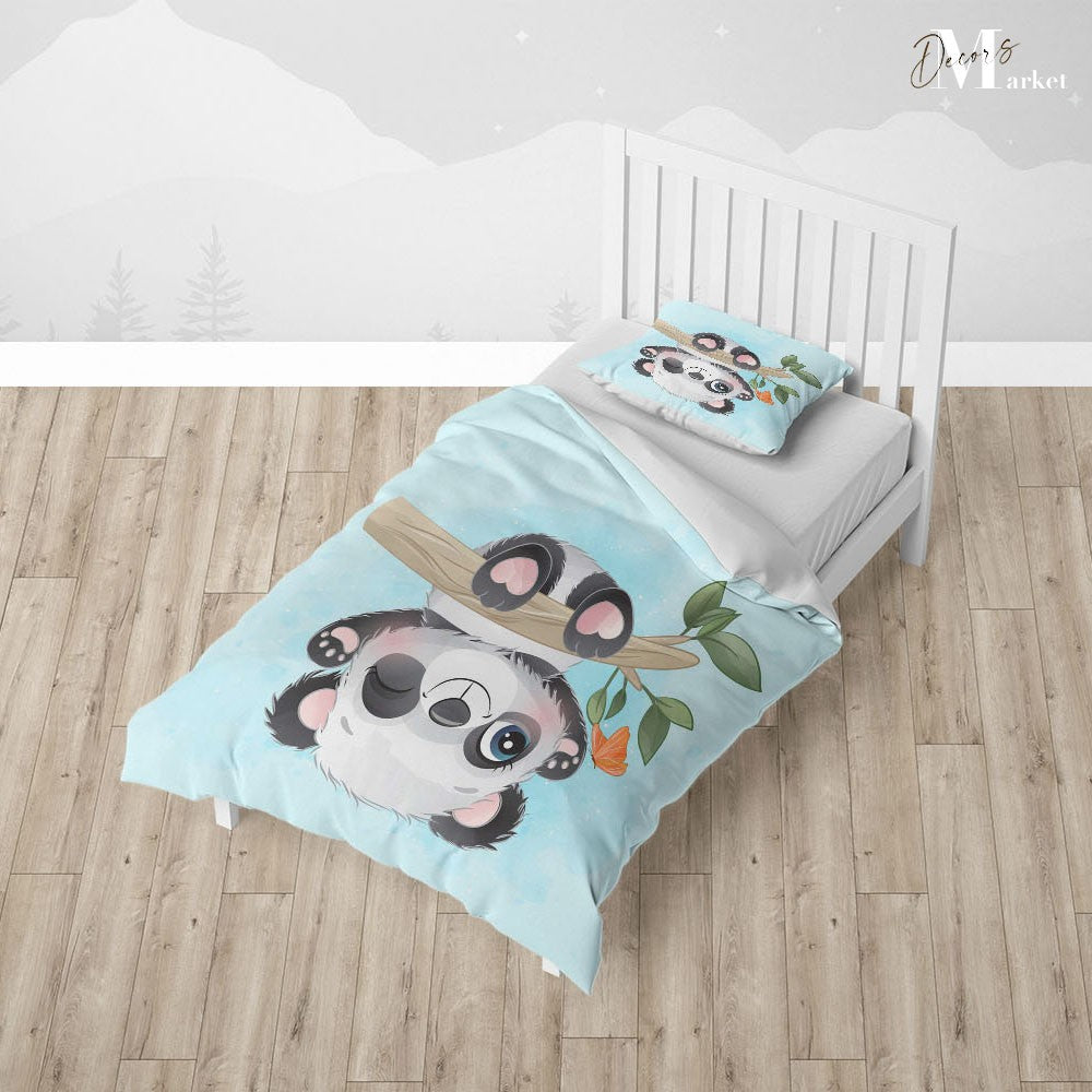 Upside Down Panda Duvet Cover Set w Pillow Cover, Blue Art Watercolor 3D Quilt Cover, Single Double Queen King Size Doona Cover