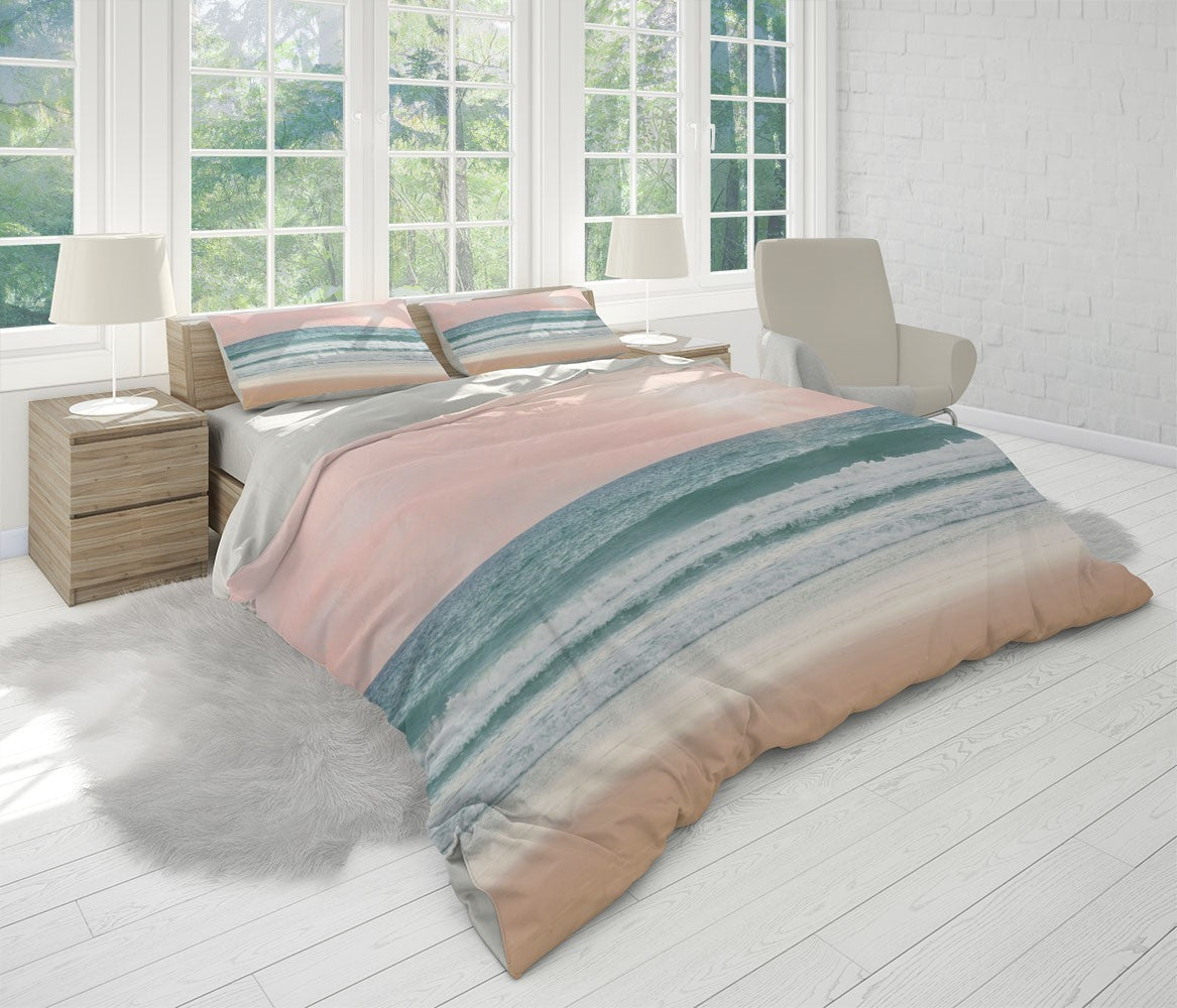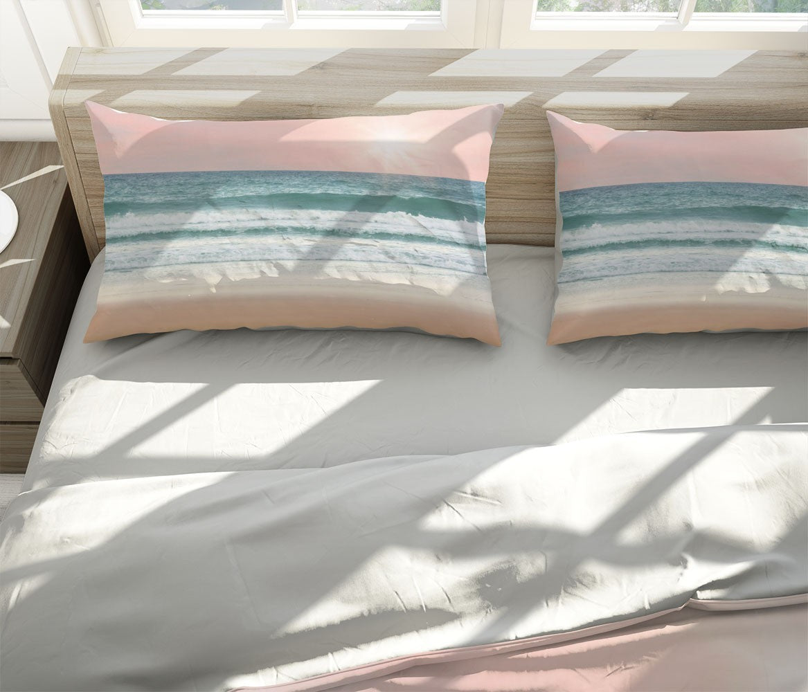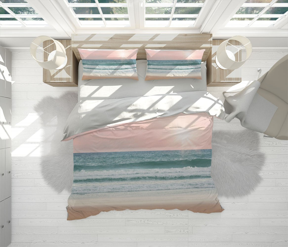 Vanilla Beach Duvet Cover Set W Pillow Cover, Pink Beach Sunrise & Sunset 3D Quilt Cover, Single Double Queen King Size Doona Cover