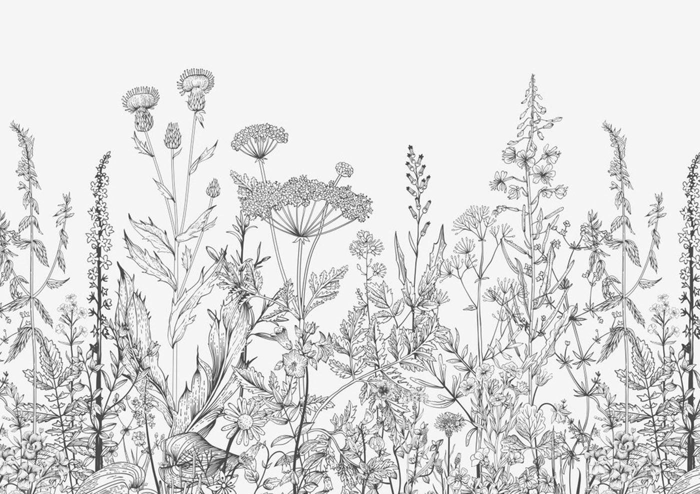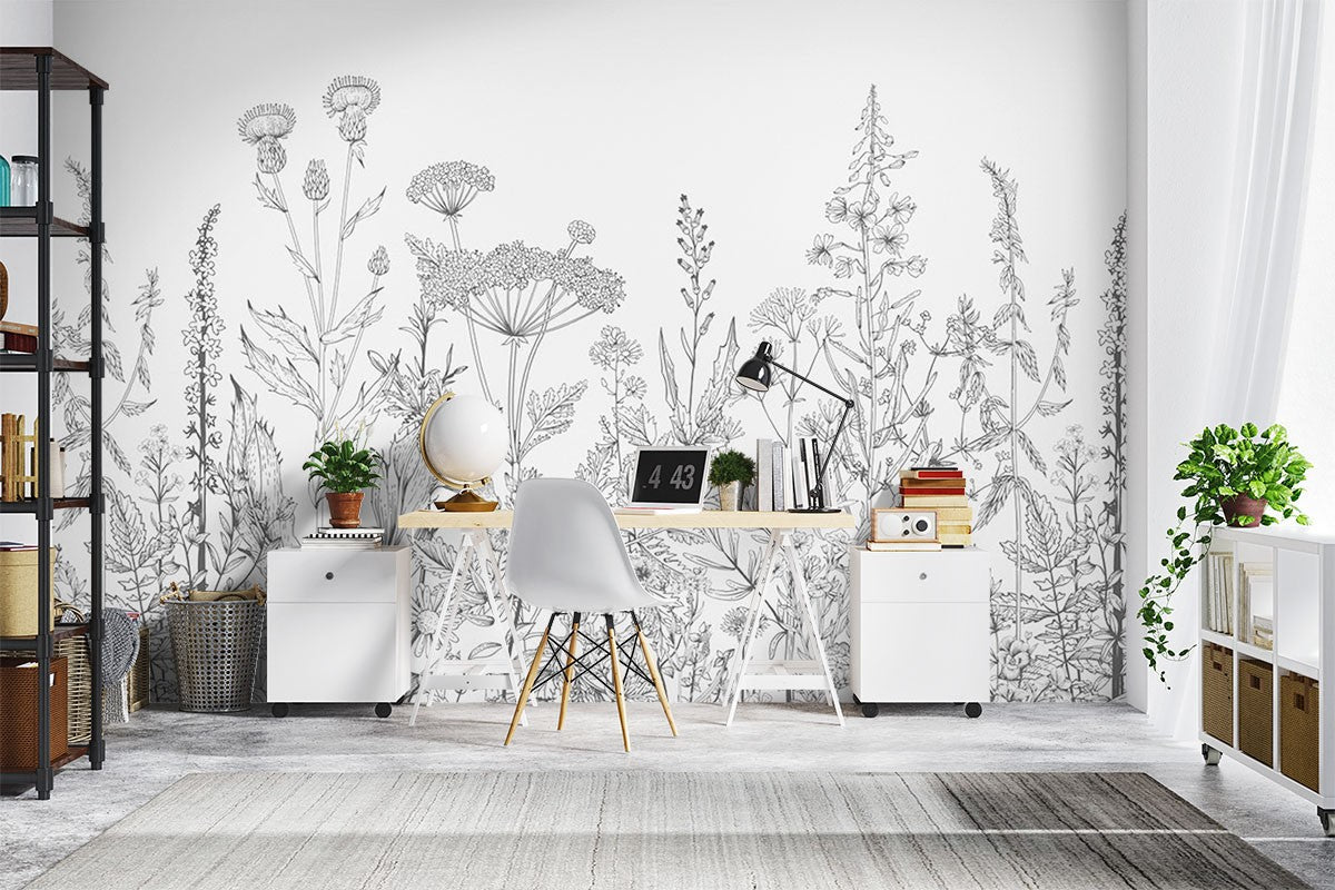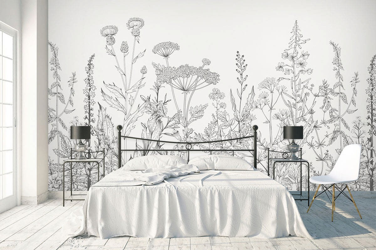 Vegetation Floral Dutch Flowers Black&White Wallpaper Mural,Self-Adhesive Peel And Stick 3D Wall Decor,Designer Bedroom Wall Decor
