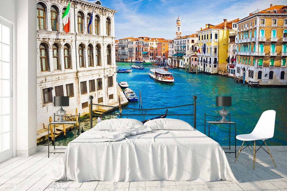 Venice City Landmarks Blue Wallpaper Mural,Self-Adhesive Peel And Stick 3D Wall Decal,Australian Company Bedroom Wall Decor