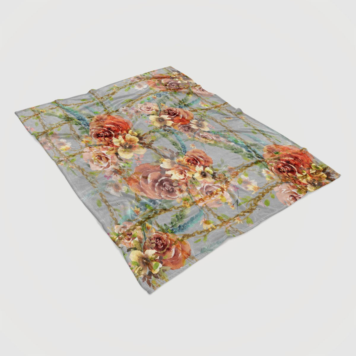 Vine Garden Rose Floral Patterns Red Personalized Throw Blanket Custom Fleece Sherpa Throw