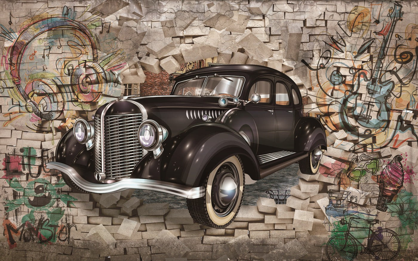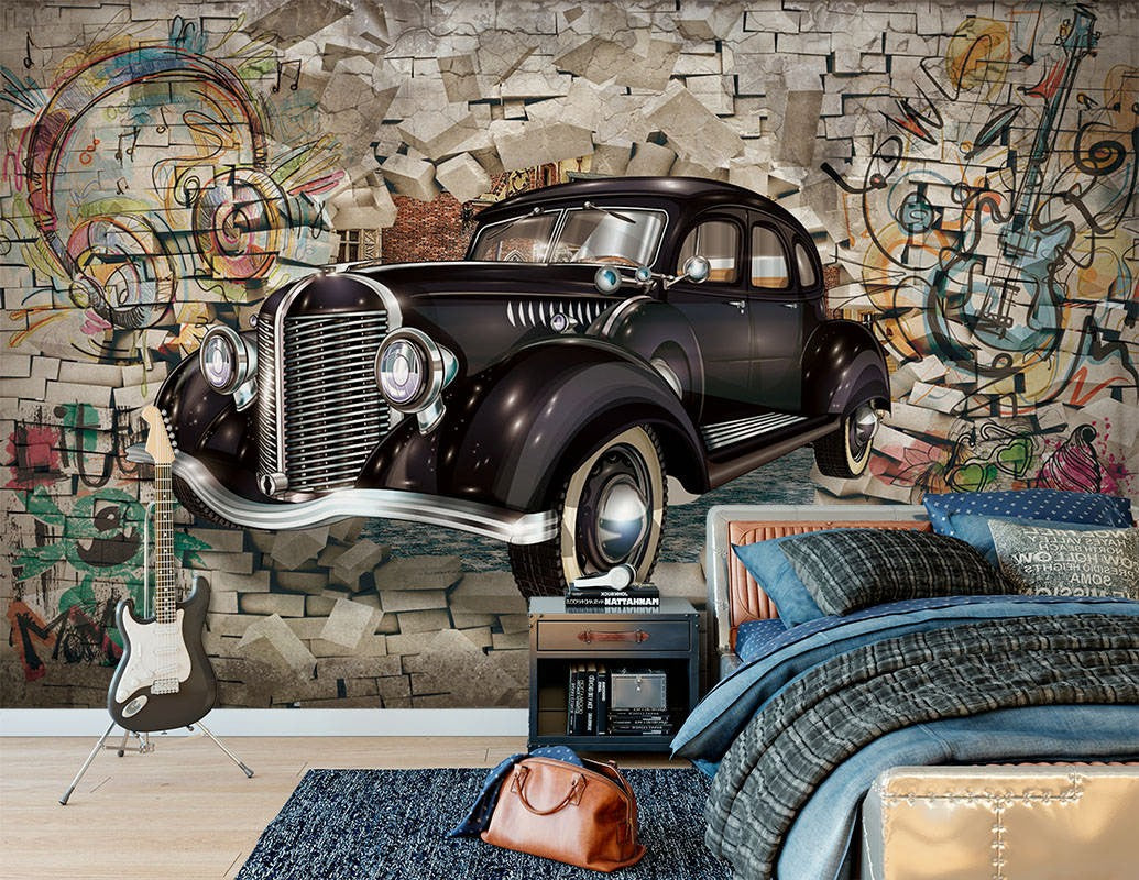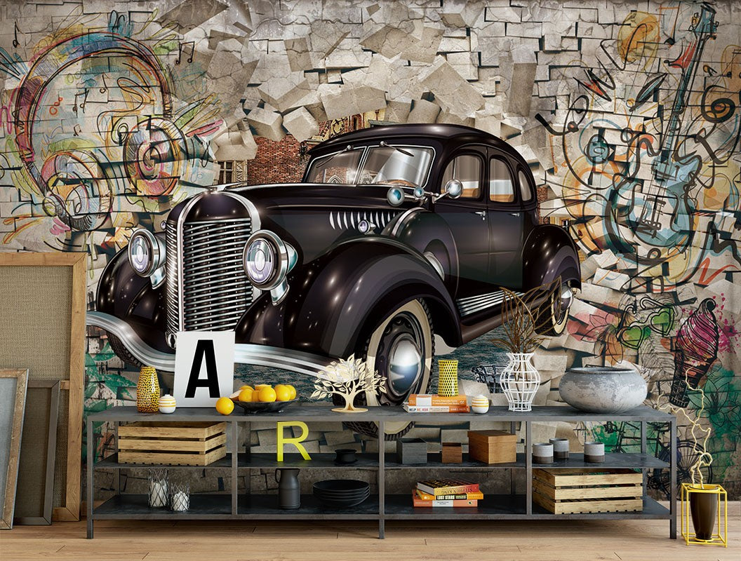 Vintage Car Vehicle Vintage Car Brown Wallpaper Mural,Self-Adhesive Peel And Stick 3D Wall Paper,Removable Bedroom Wall Decor