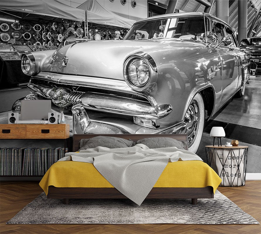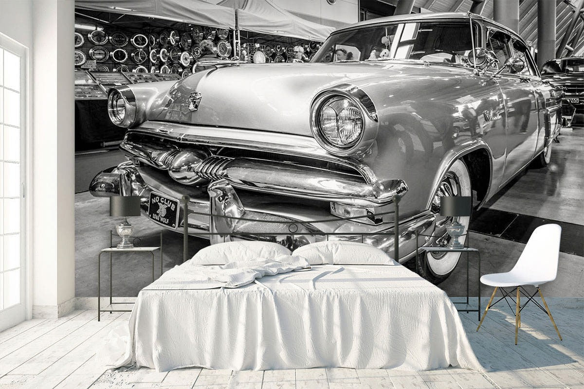Vintage Convertible Vintage Car Gray Wallpaper Mural,Self-Adhesive Peel And Stick 3D Wall Decor,Designer Removable Wall Decor