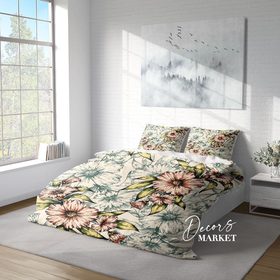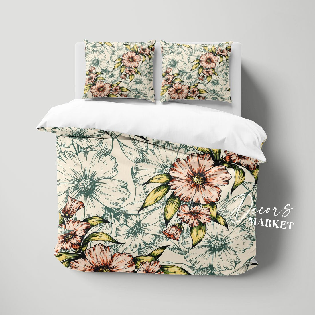 Vintage Daisy Duvet Cover Set w Pillowcases, Creamy White Floral Patterns 3D Quilt Cover, 3pc Single Double Queen King Size Doona Cover