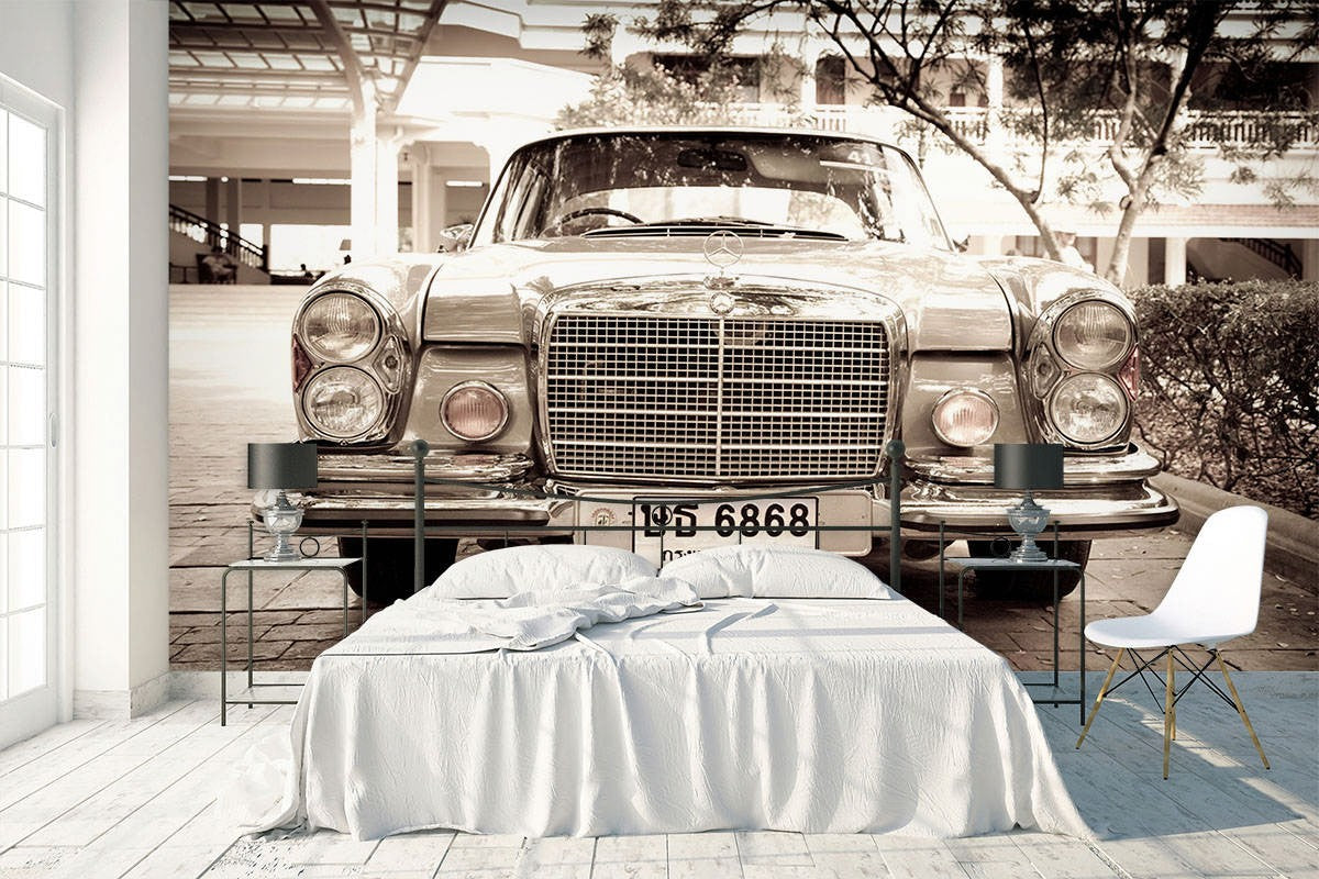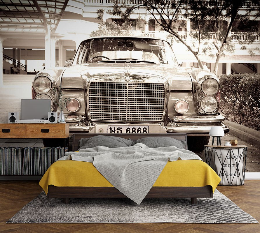 Vintage Wagon Vehicle Vintage Car Brown Wallpaper Mural,Self-Adhesive Peel And Stick 3D Wall Decor,Bedroom Removable Wall Decor